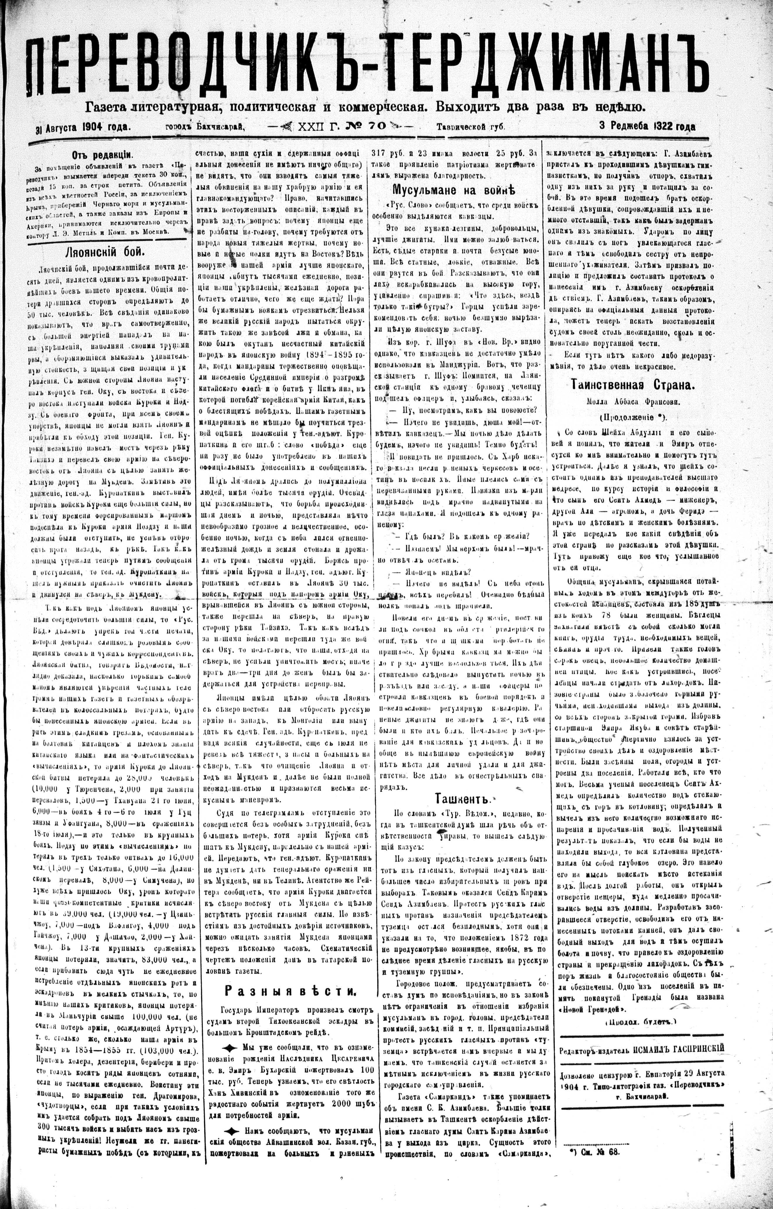 Turkish-Russian newspaper published in Crimea by İsmail Gaspıralı.
