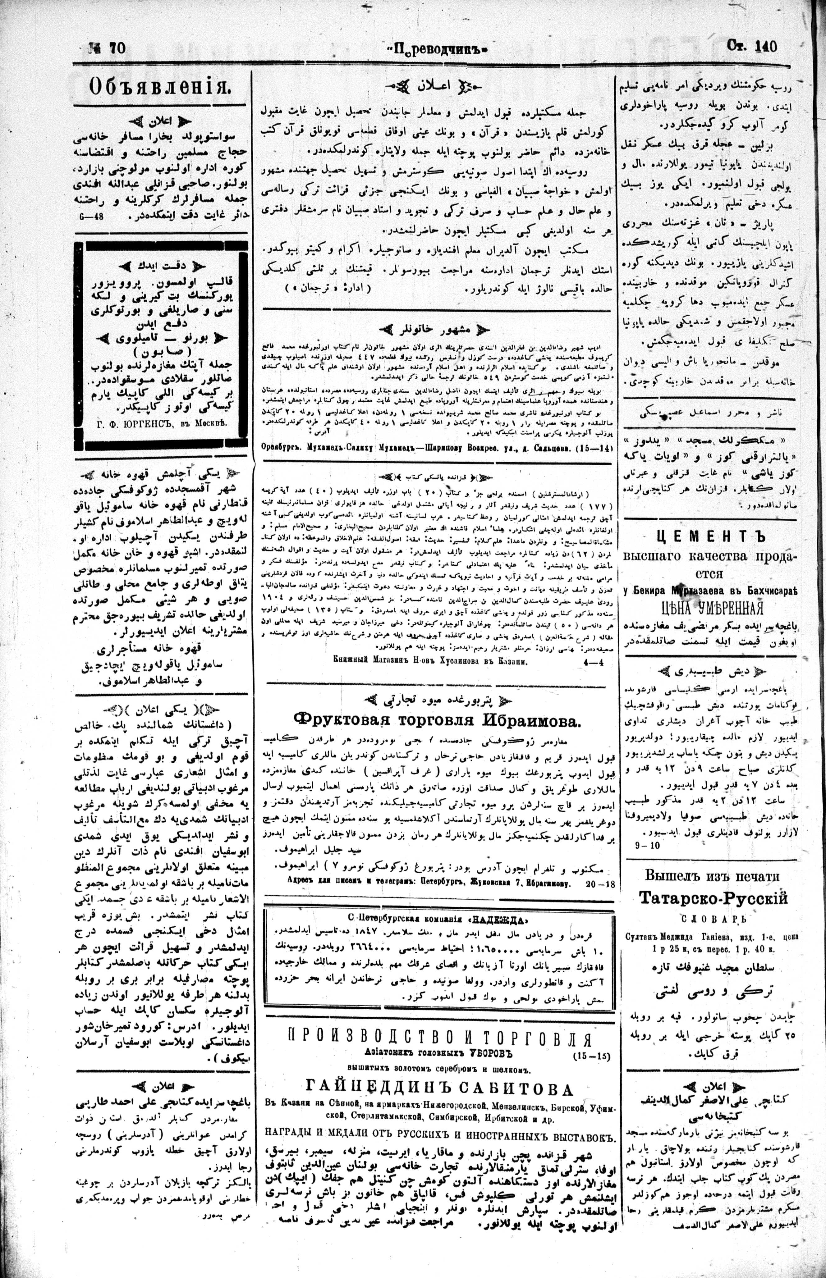 Different spellings of Tercüman: Terdzhiman, Terjuman, Perevodçik and Terjiman.