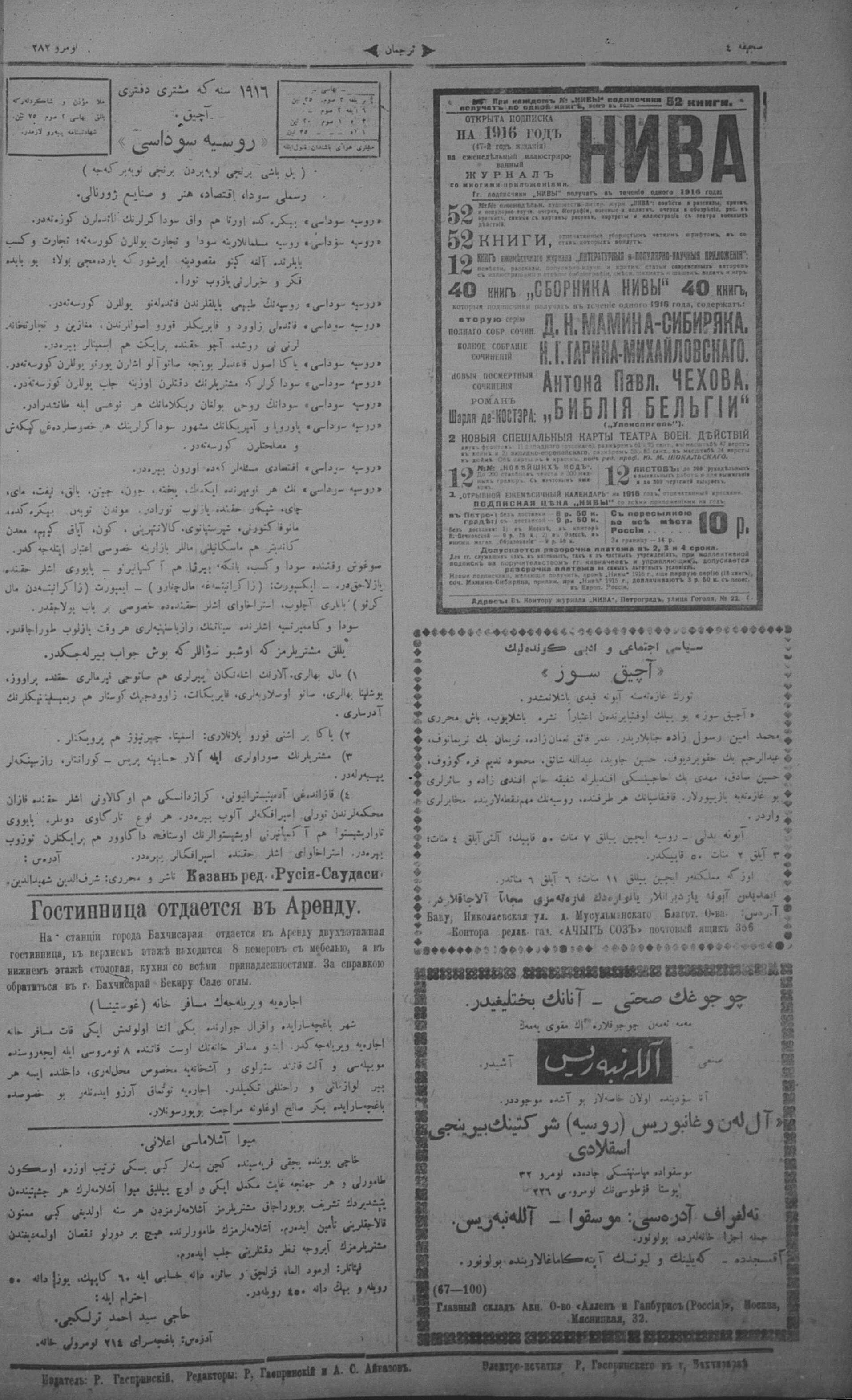 Turkish-Russian newspaper published in Crimea by İsmail Gaspıralı.