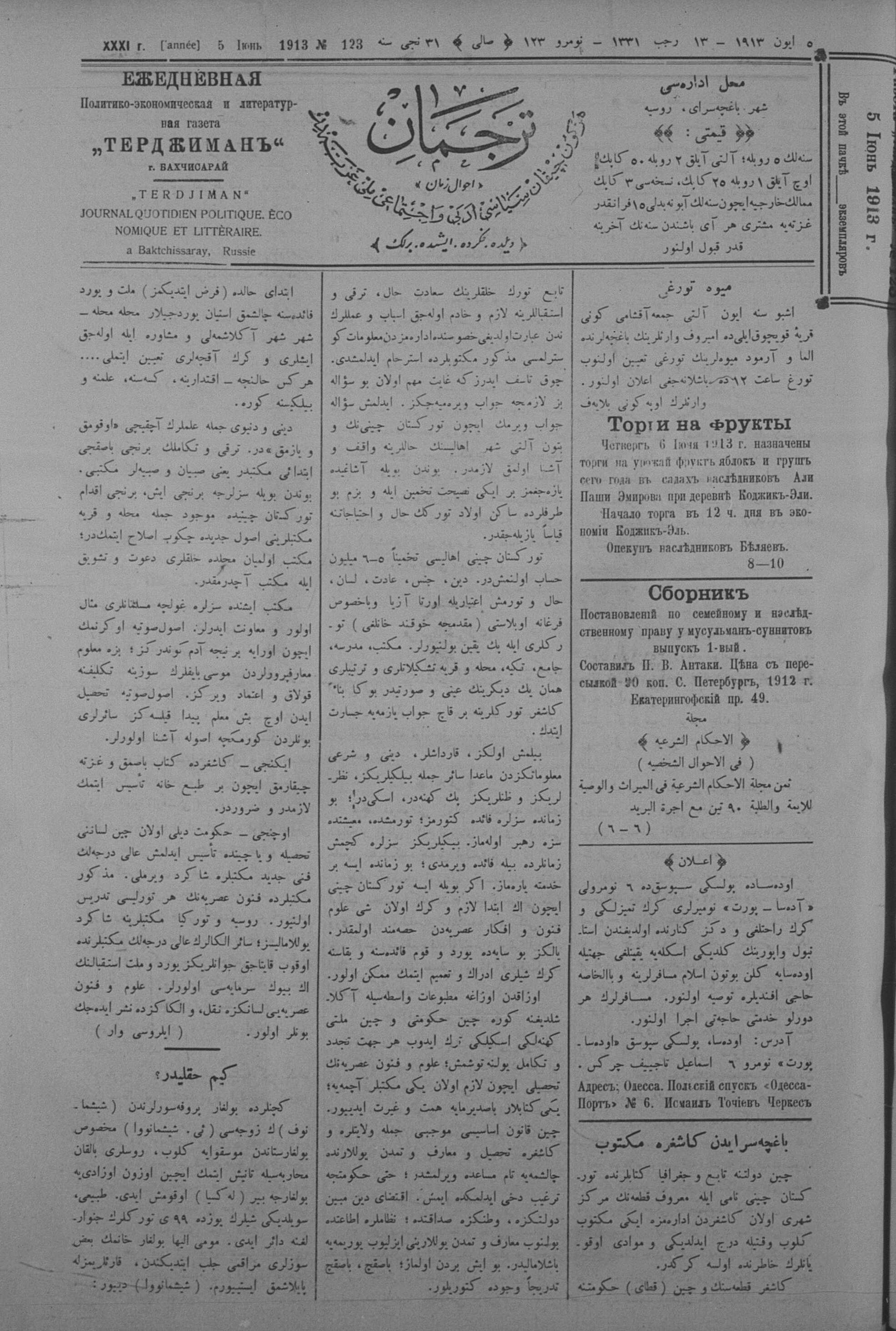 Tercüman, 05 June 1913 Year 31 No 123