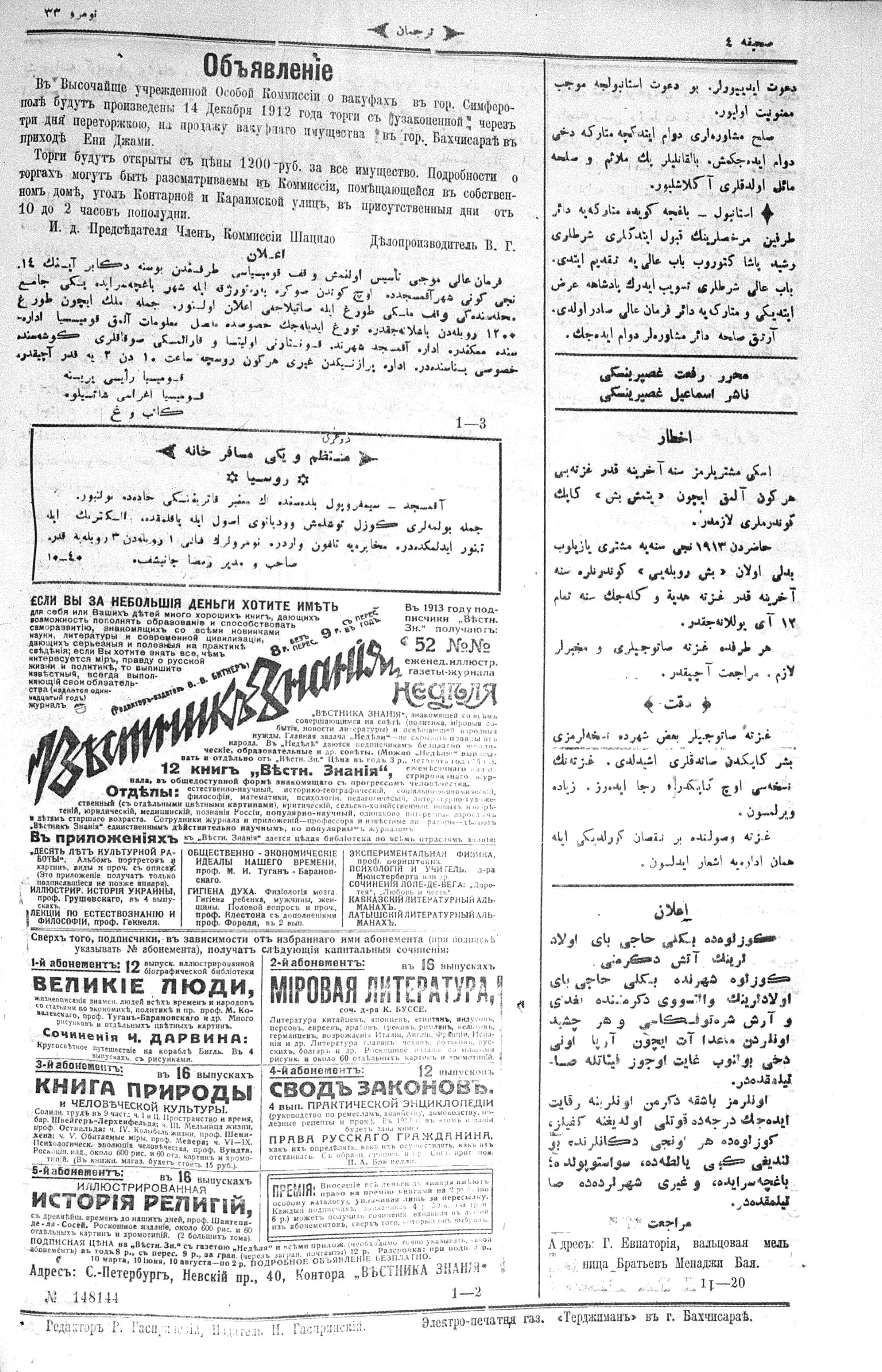 Turkish-Russian newspaper published in Crimea by İsmail Gaspıralı.