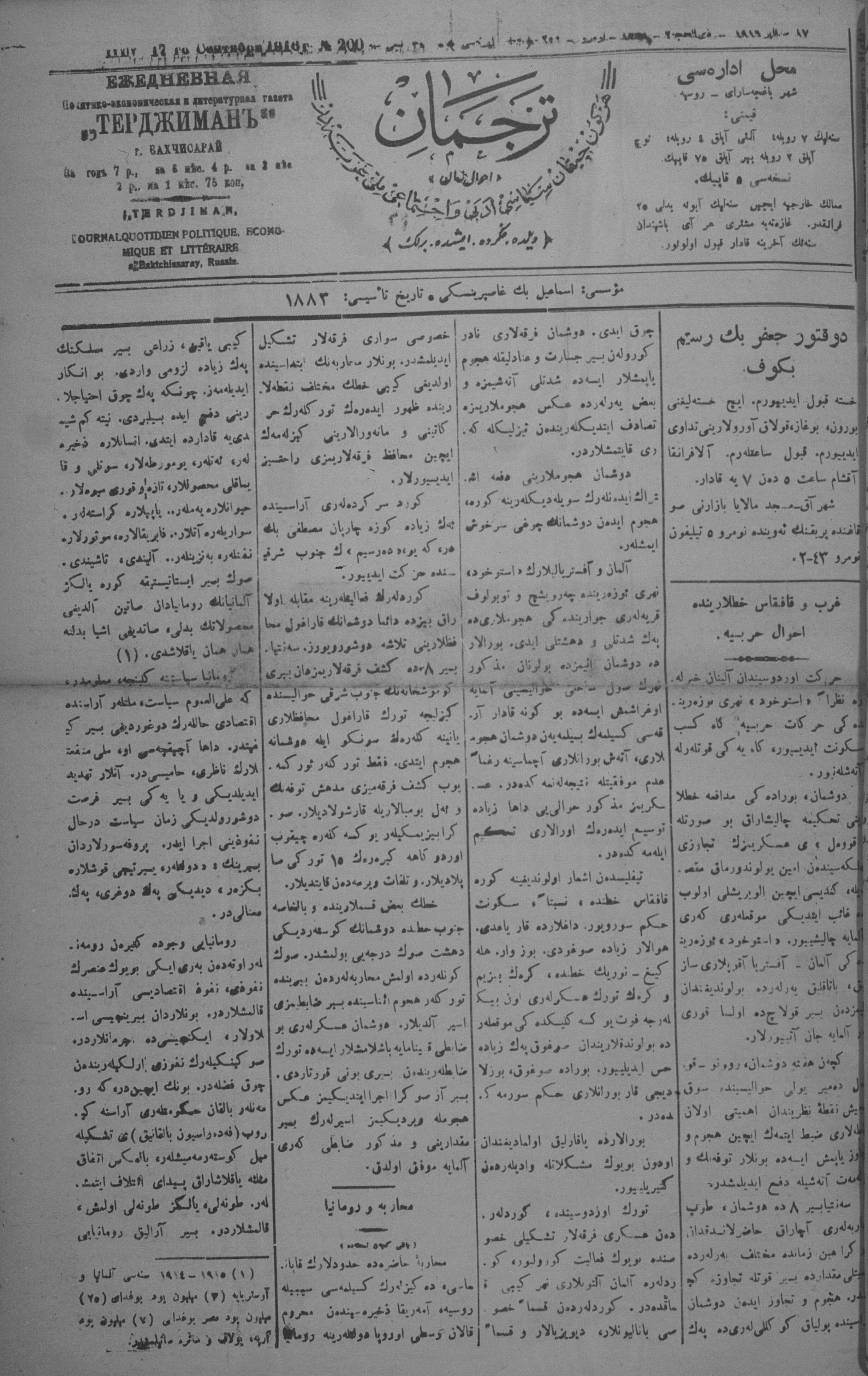 | dc.description | Turkish-Russian newspaper published in Crimea by İsmail Gaspıralı. | |