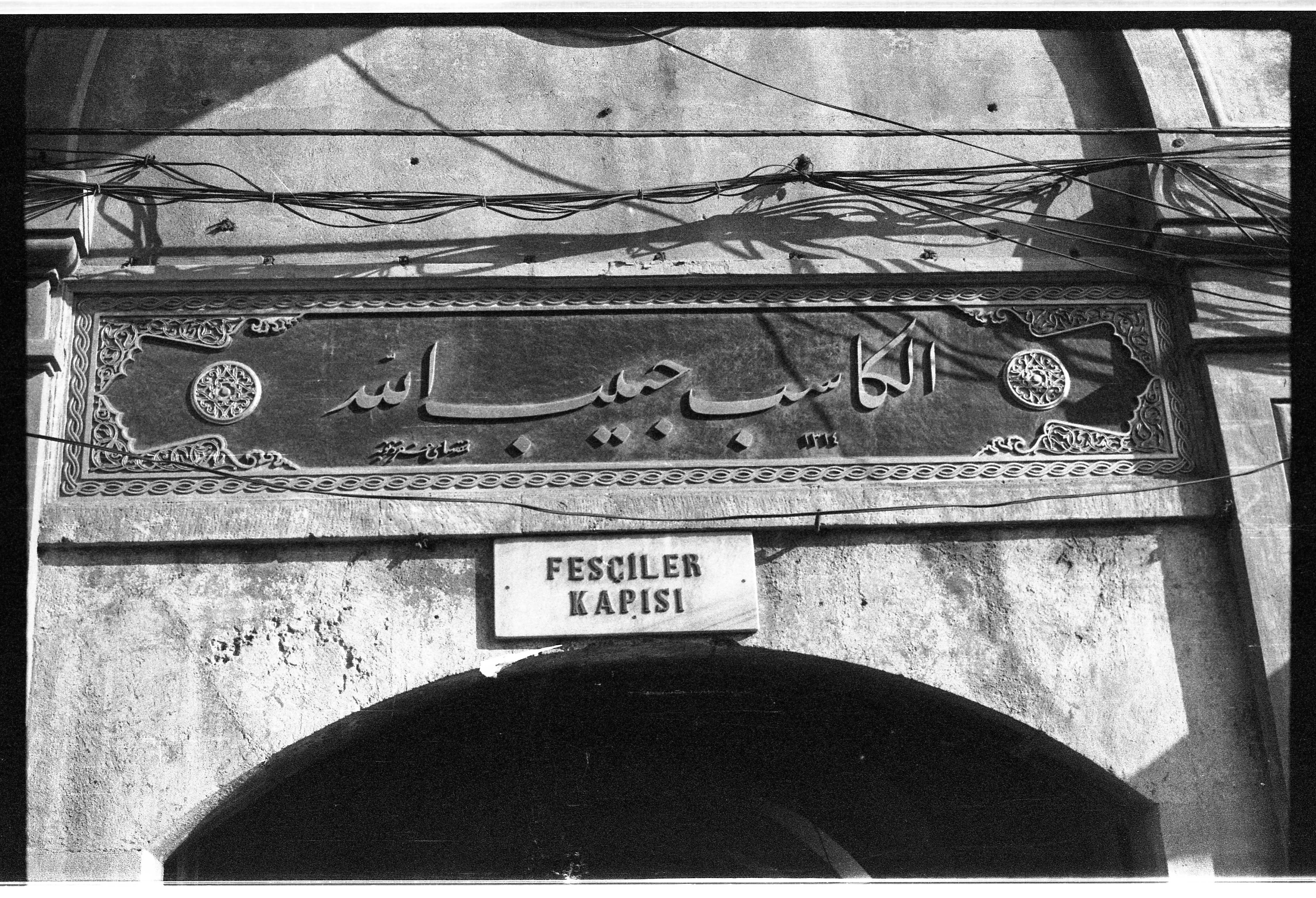 Kapalıçarşı Bayezid Fesçiler Kapısı'nın Hattat Sami Efendi tarafından yazılmış kitabesi ve tuğrası