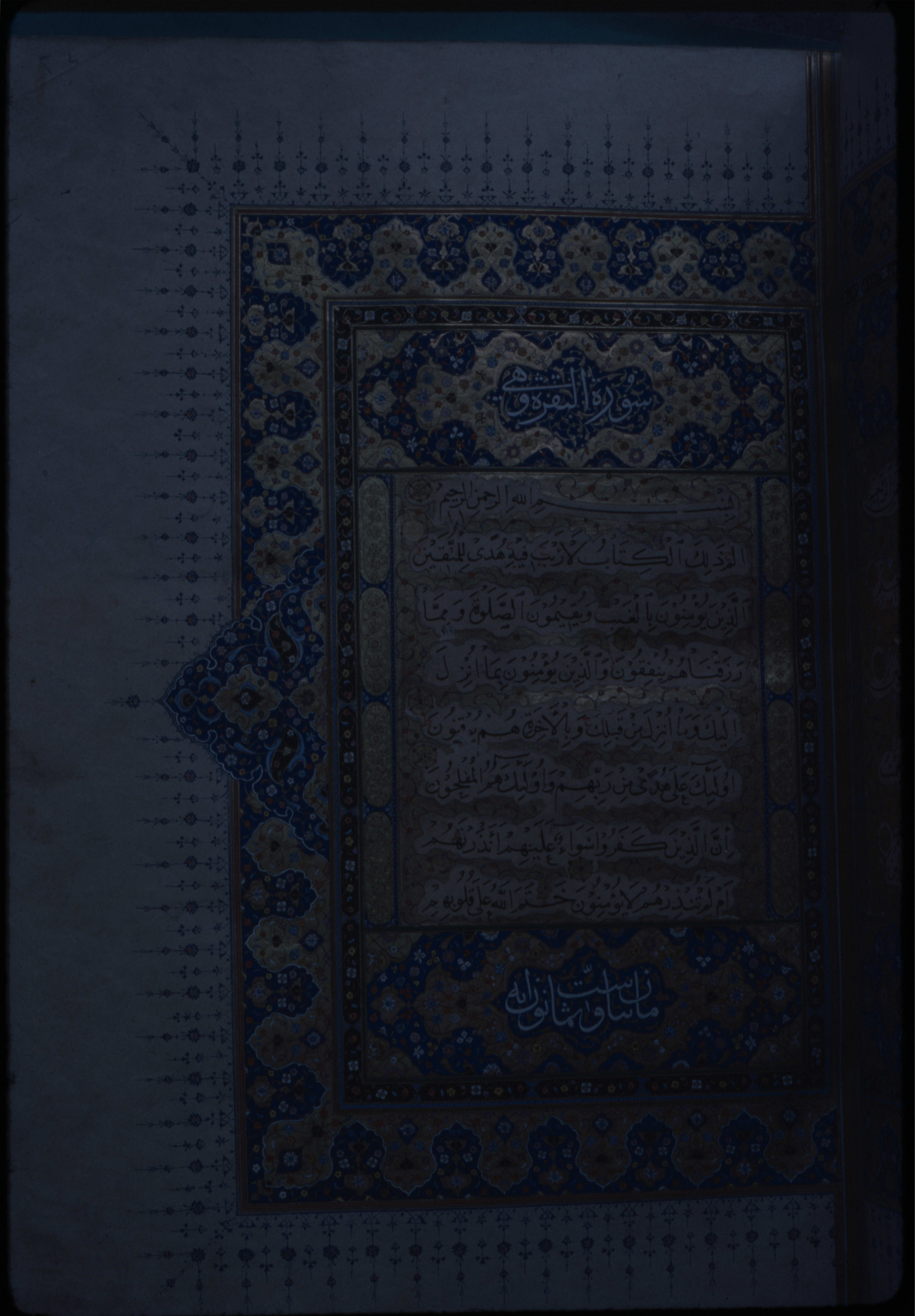 Süleymaniye Kütüphanesi Hamidiye 5 numarada kayıtlı yakut hattı ile yazılmış olan Kur'an-ı Kerim'in Bakara Suresi'nin ilk ayetleri