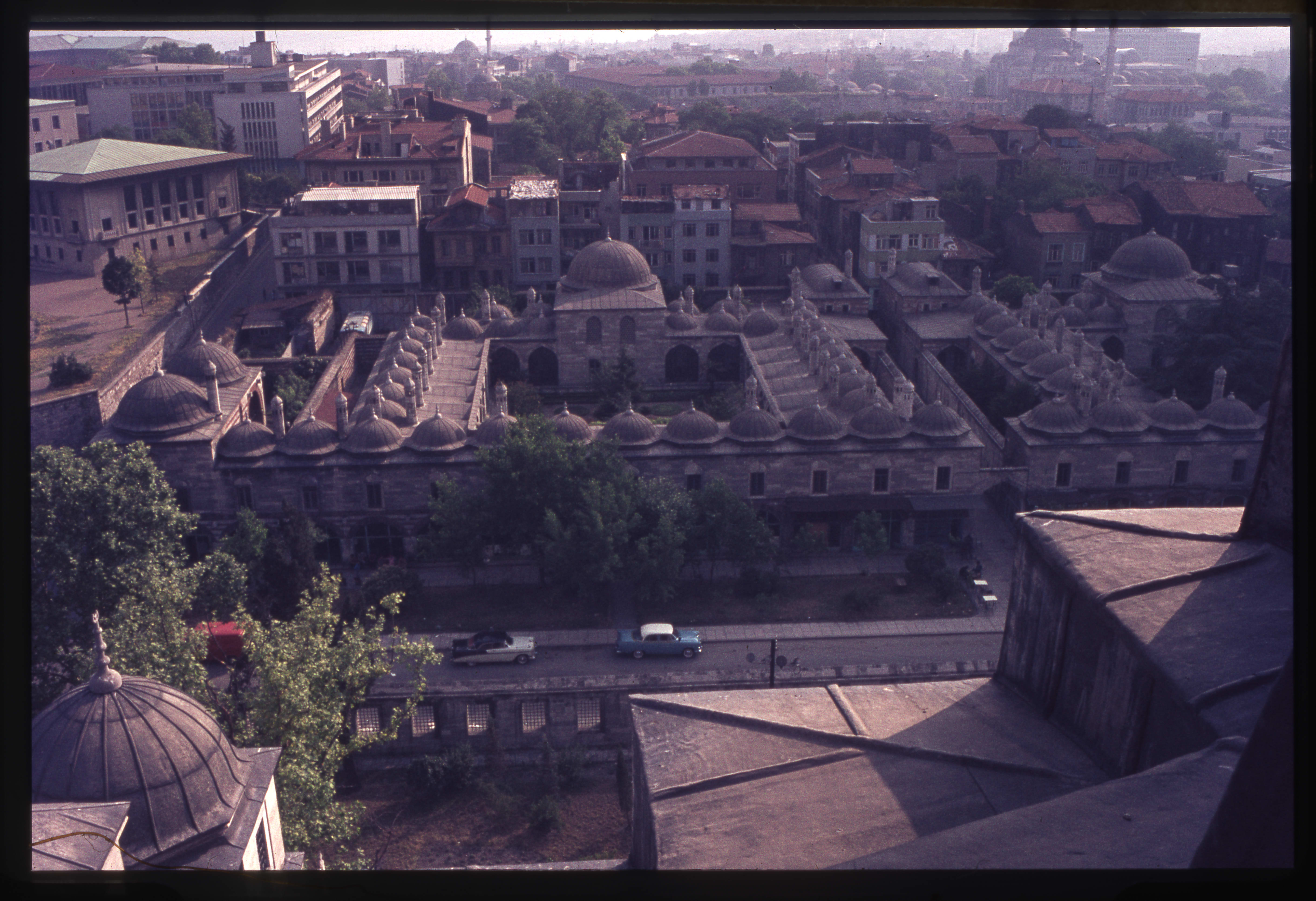İstanbul-Süleymaniye Camii'nin kubbesinden Süleymaniye Kütübhanesi'nin görünüşü