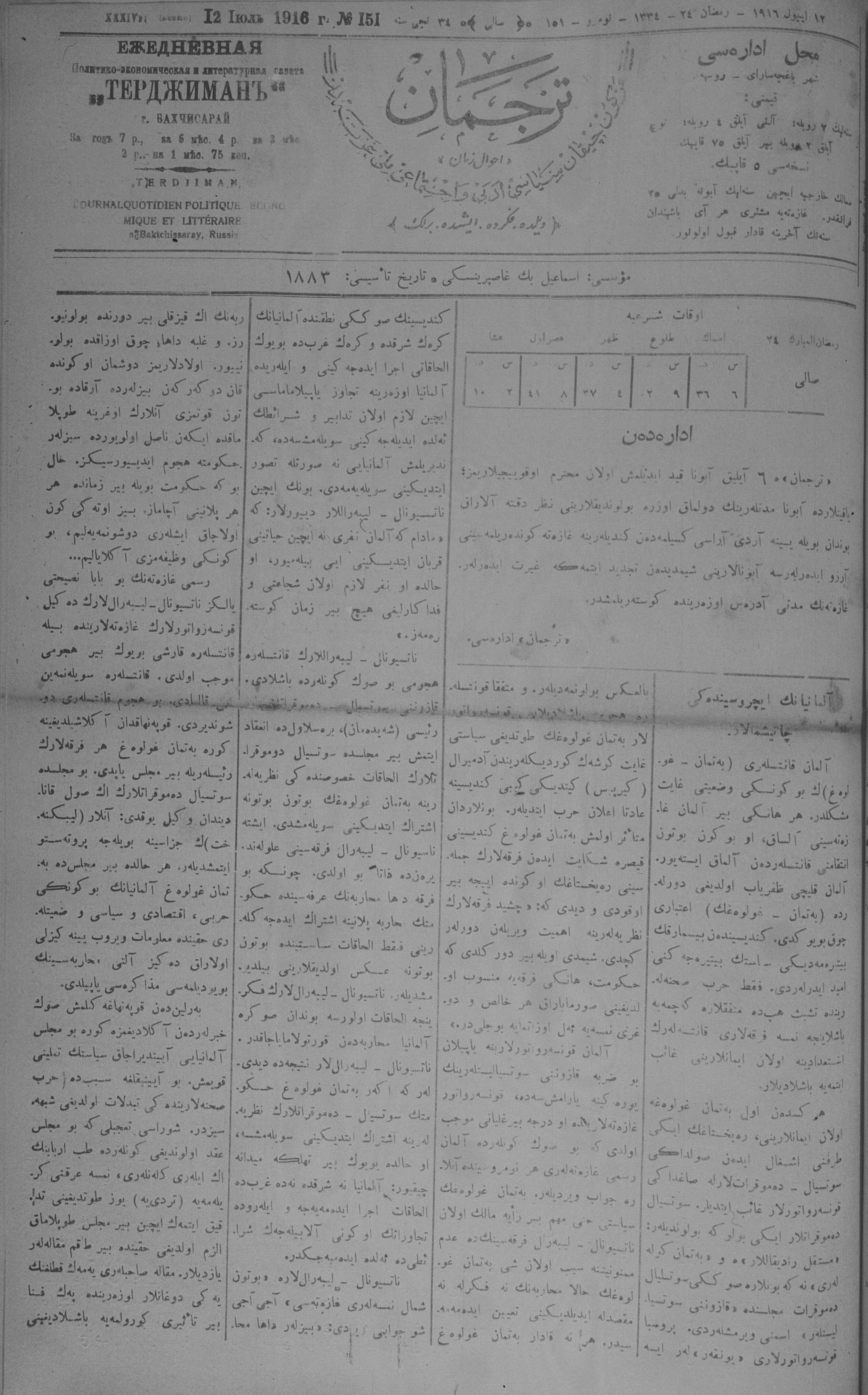Turkish-Russian newspaper published in Crimea by İsmail Gaspıralı.