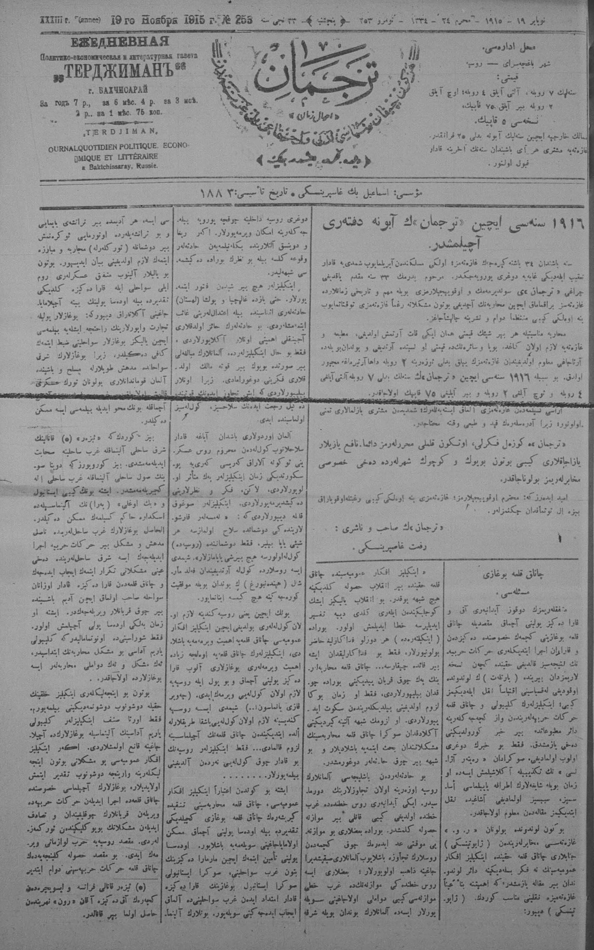 Tercüman, 19 November 1915 Year 33 No 253