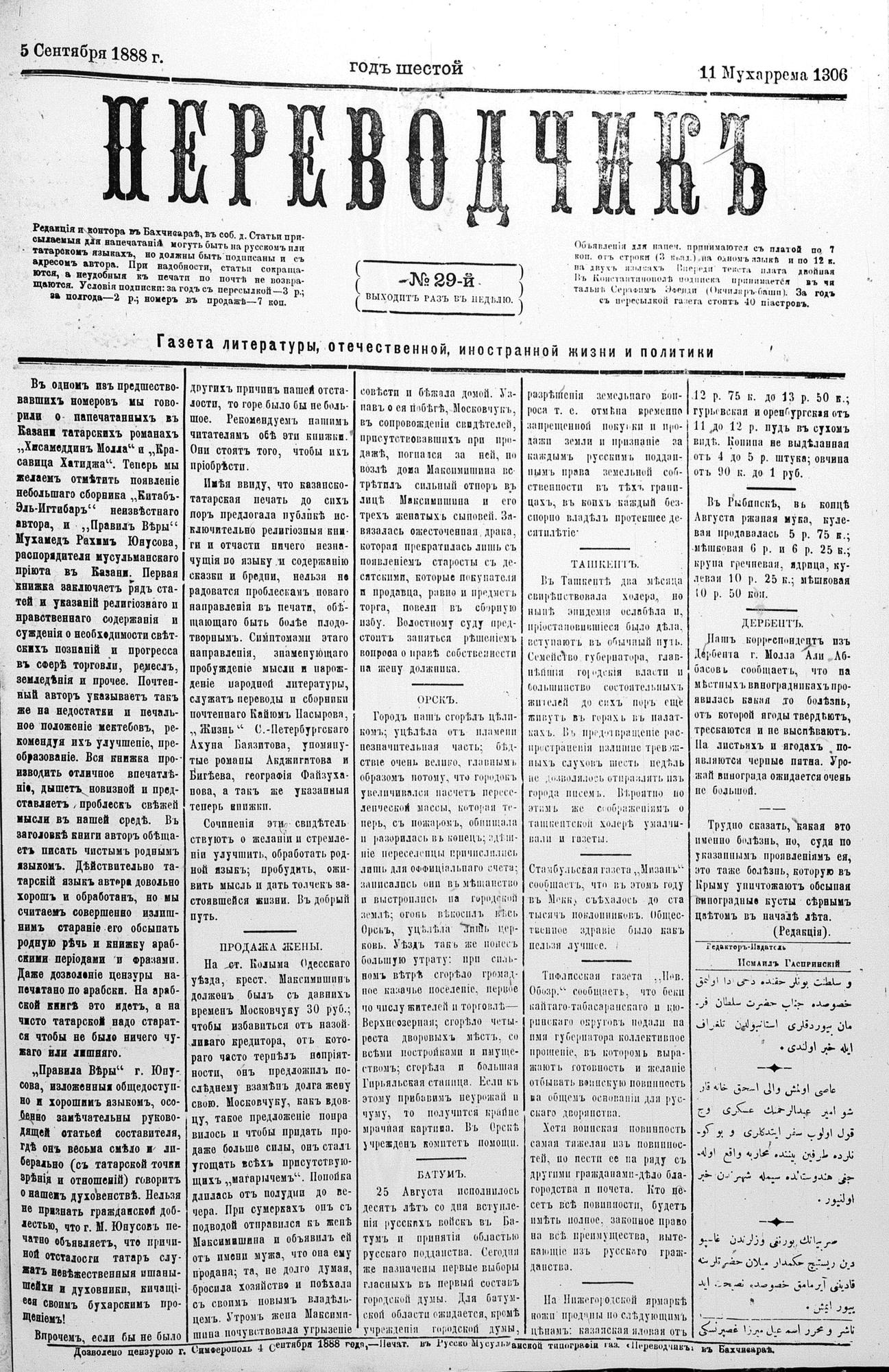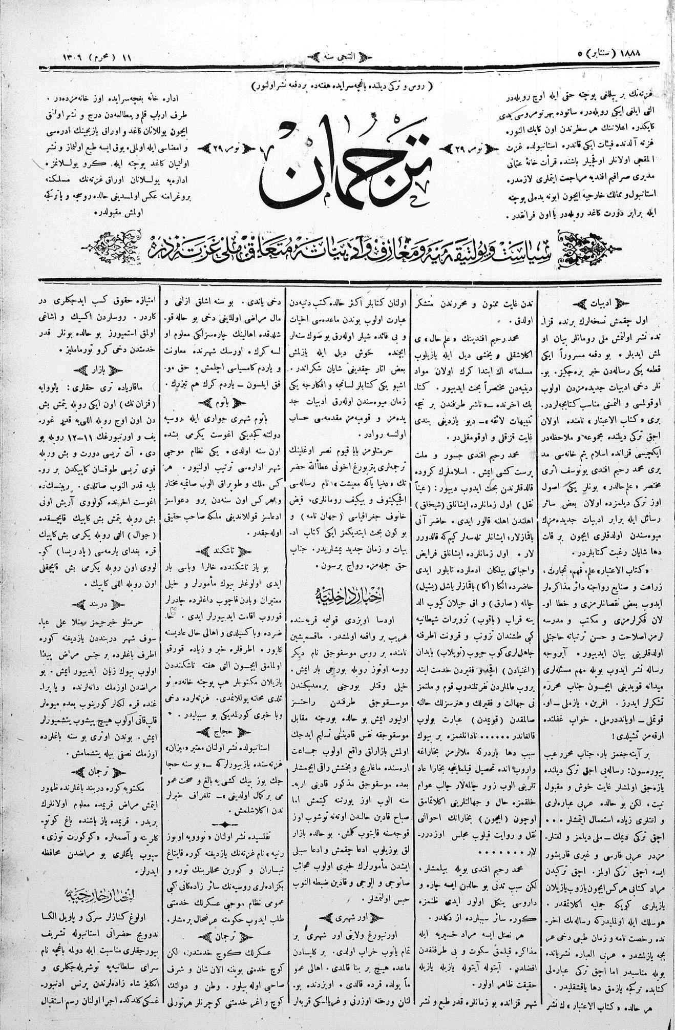 Tercüman, 05 September 1888 Year 6 No 29