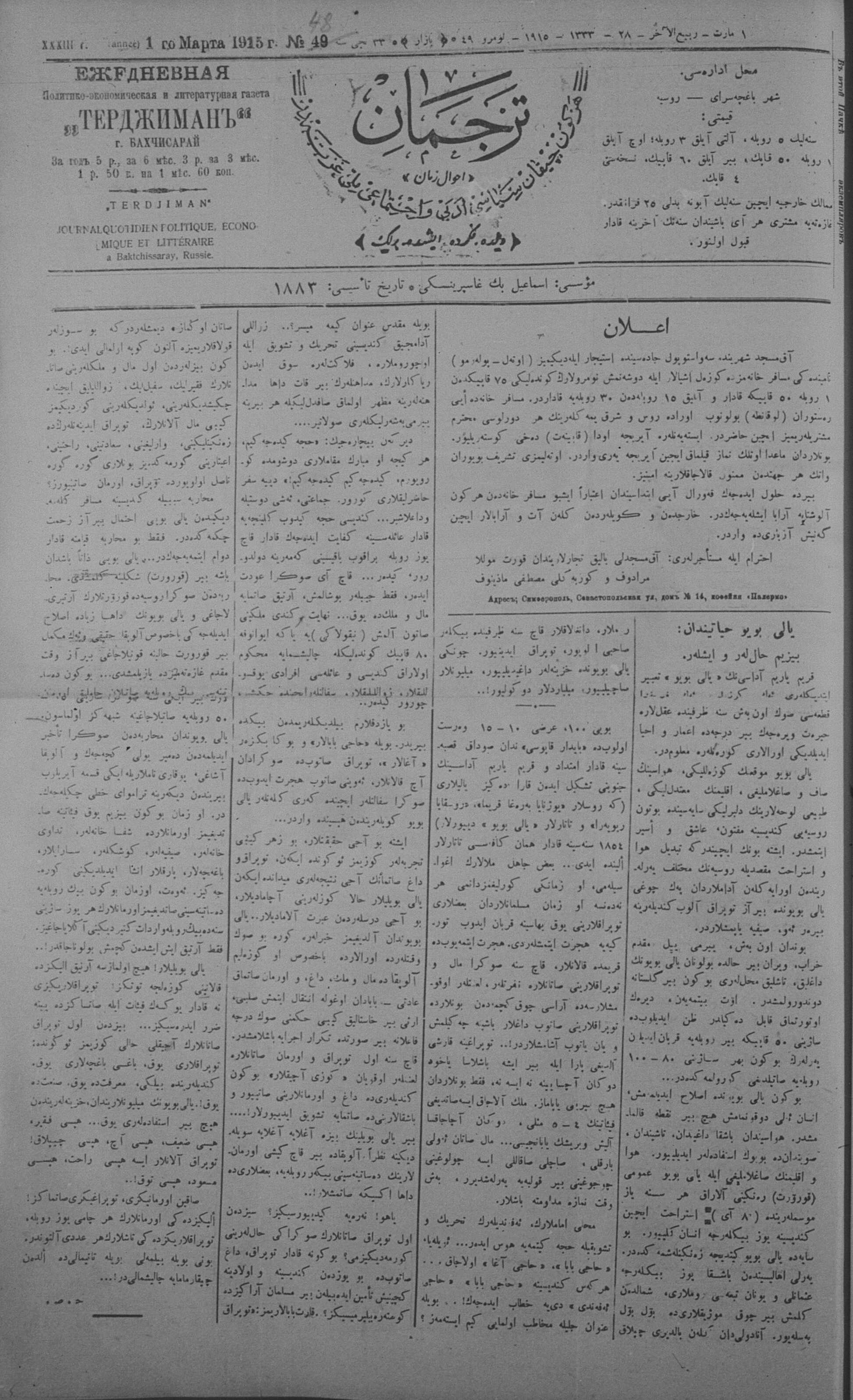 Turkish-Russian newspaper published in Crimea by İsmail Gaspıralı.