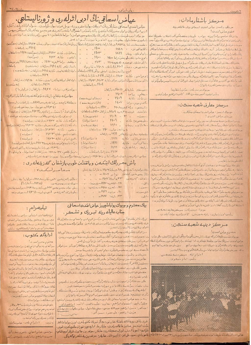 Milli Bayrak, 26 February 1937 Year 2 No 64-14