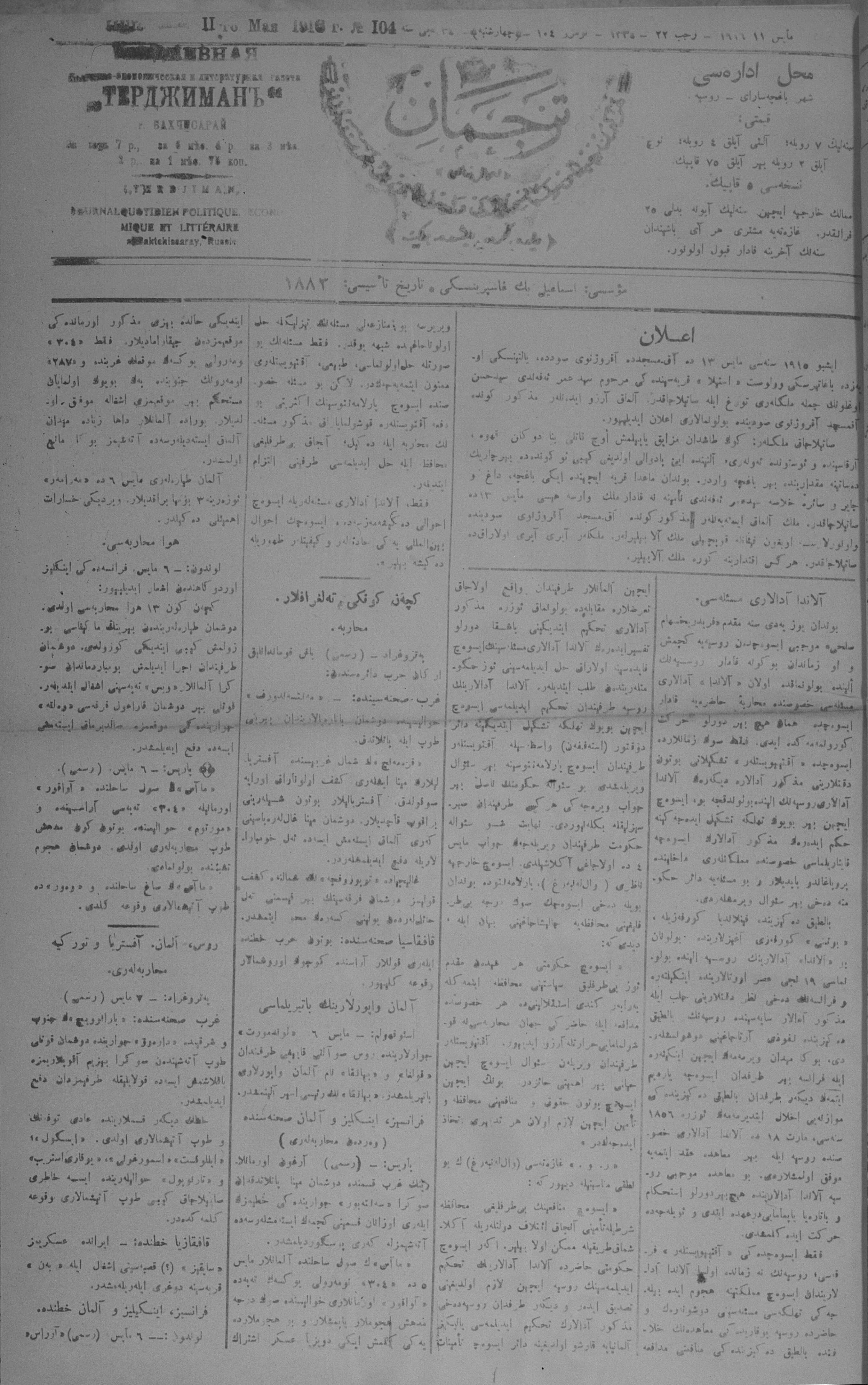 Turkish-Russian newspaper published in Crimea by İsmail Gaspıralı.
