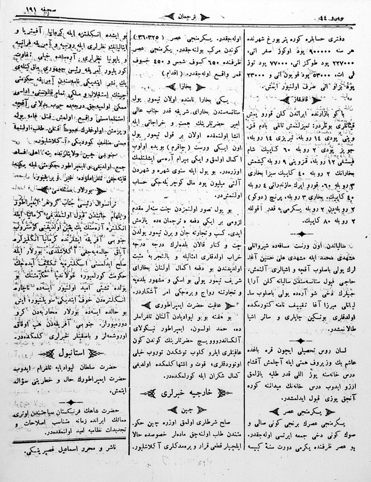 The name of the newspaper changed to Tercüman-ı Ahval-i Zaman in 1905. In 1909, it started to be published under its first name, Tercüman.