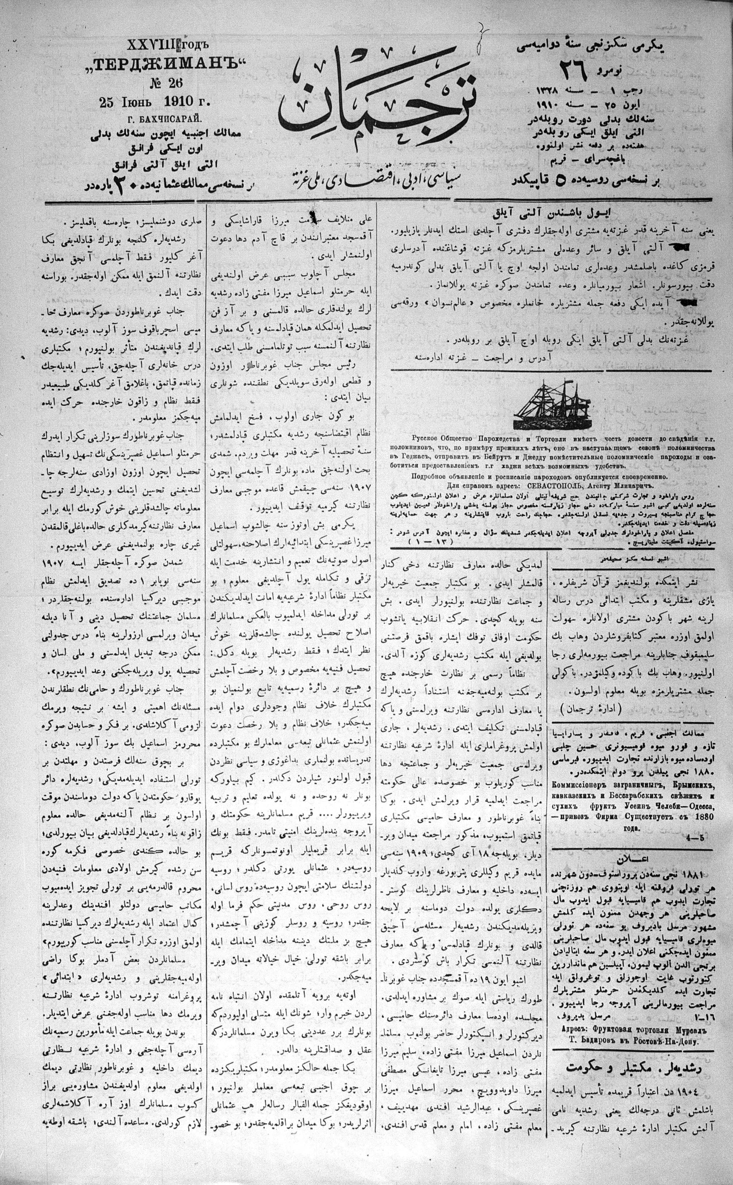 Turkish-Russian newspaper published in Crimea by İsmail Gaspıralı.