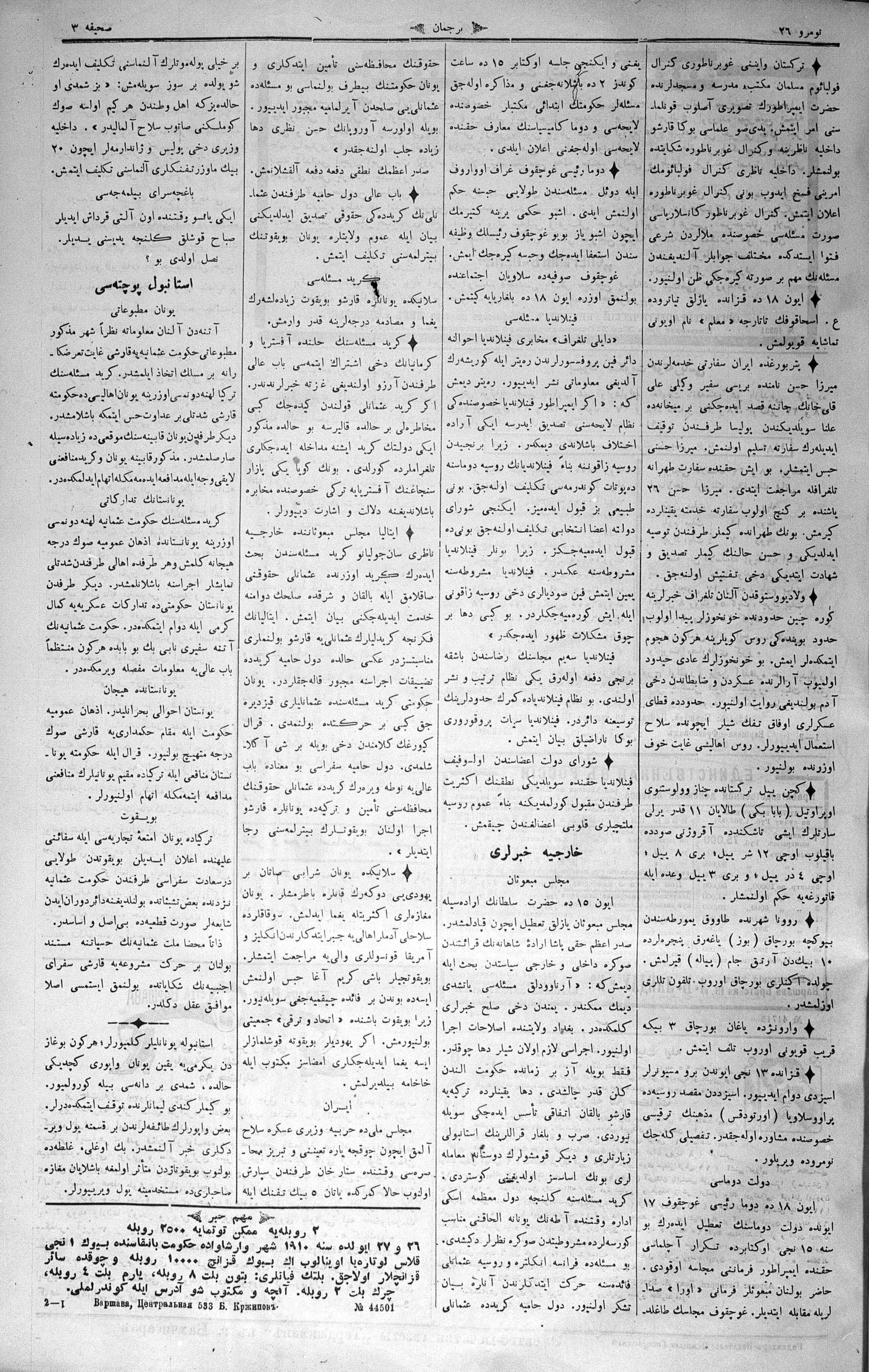The name of the newspaper changed to Tercüman-ı Ahval-i Zaman in 1905. In 1909, it started to be published under its first name, Tercüman.