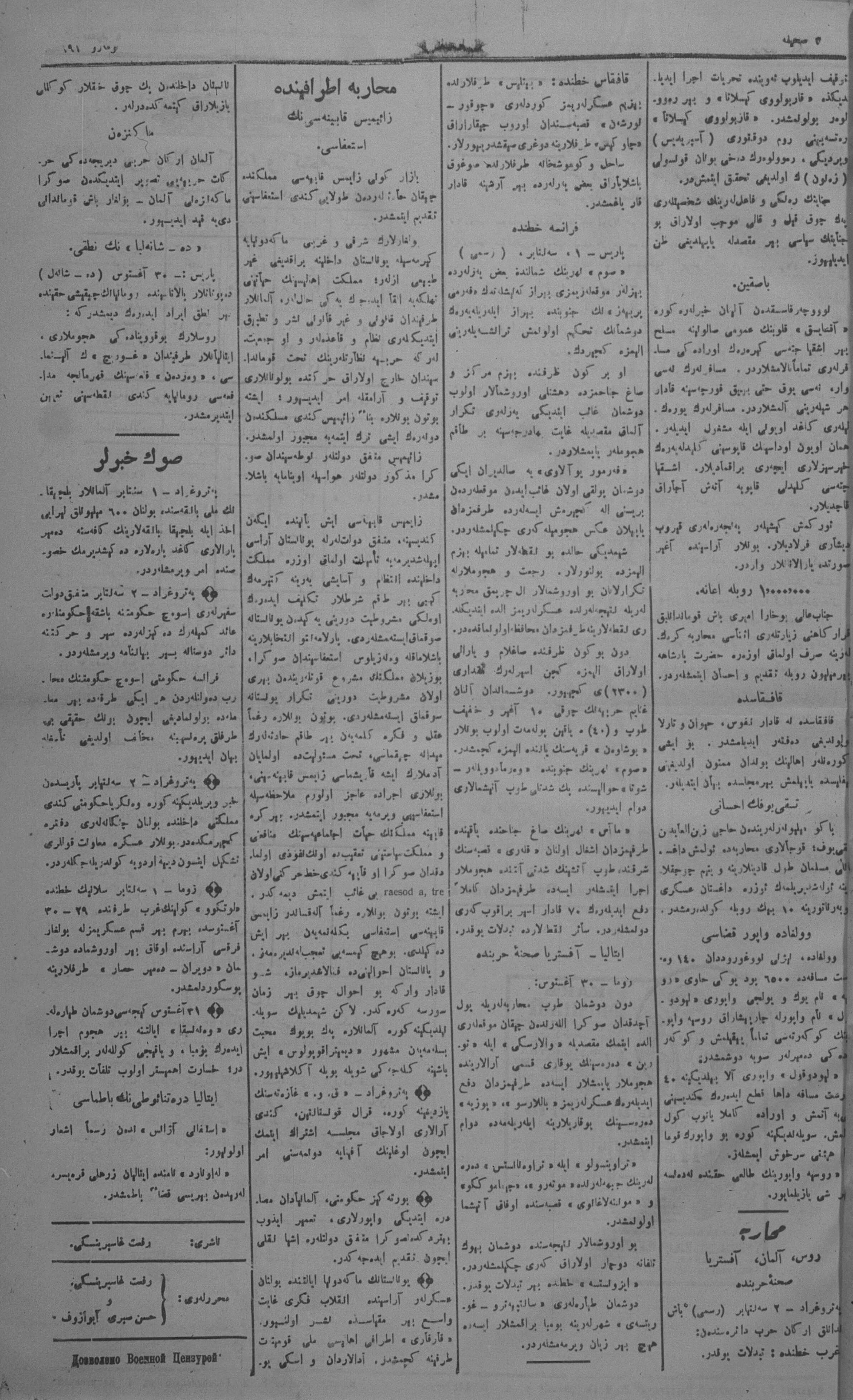 Tercüman, 04 September 1916 Year 34 No 191