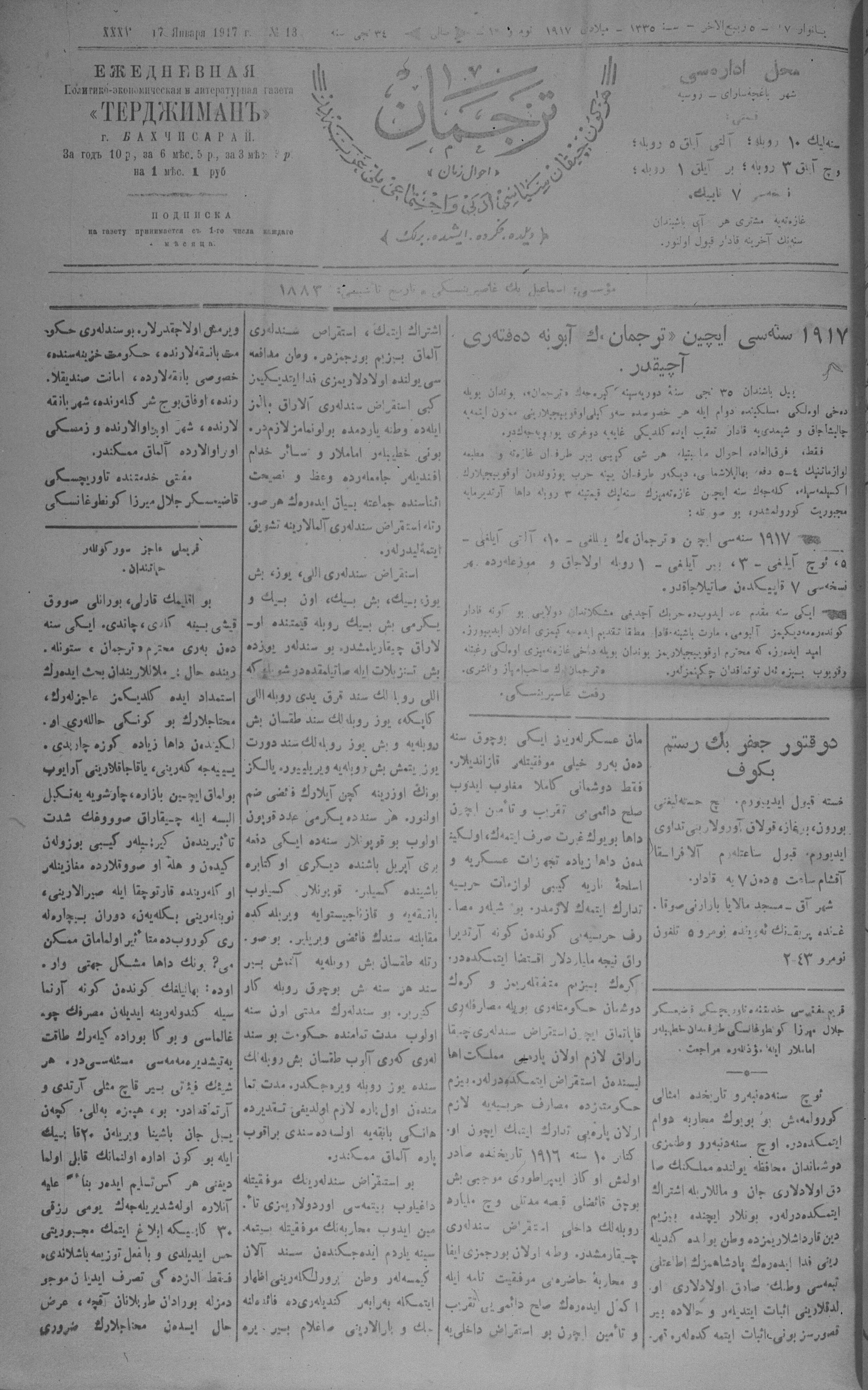 Tercüman, 17 January 1917 Year 35 No 13