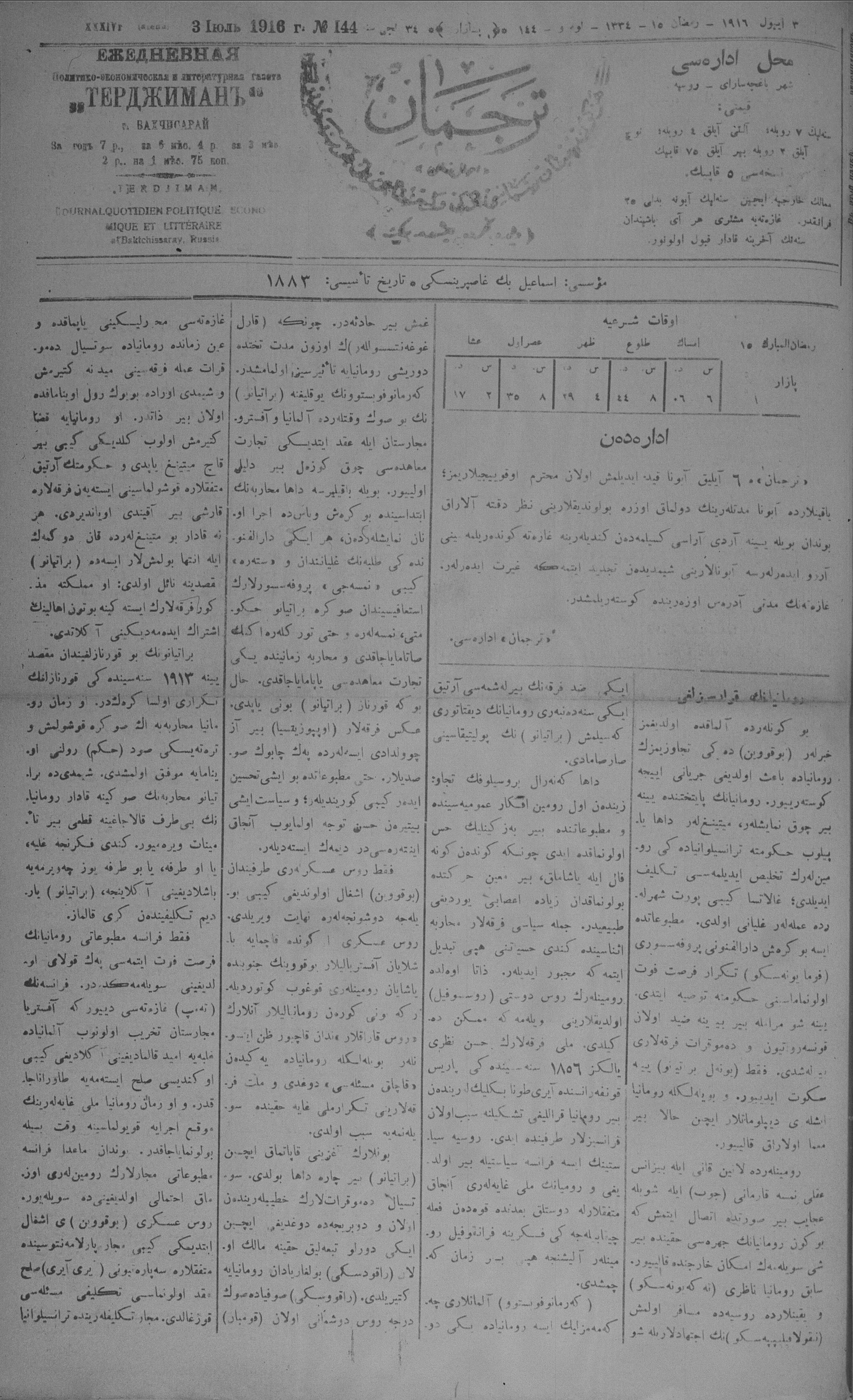 Turkish-Russian newspaper published in Crimea by İsmail Gaspıralı.