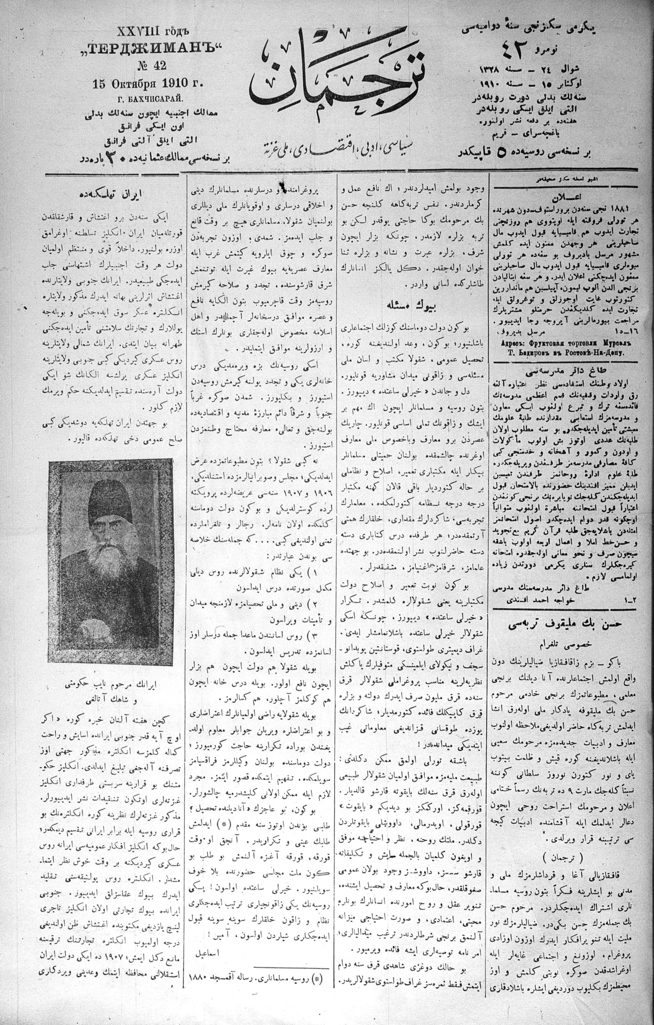 Tercüman, 15 October 1910 Year 28 No 42