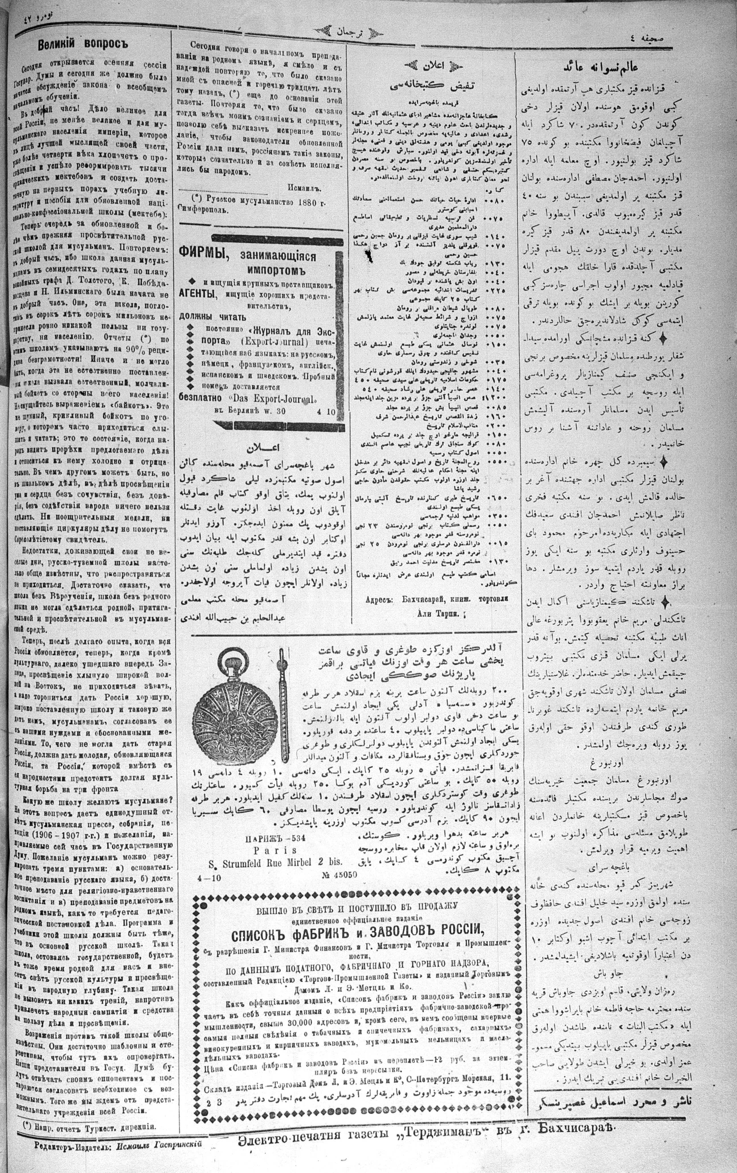 Turkish-Russian newspaper published in Crimea by İsmail Gaspıralı.