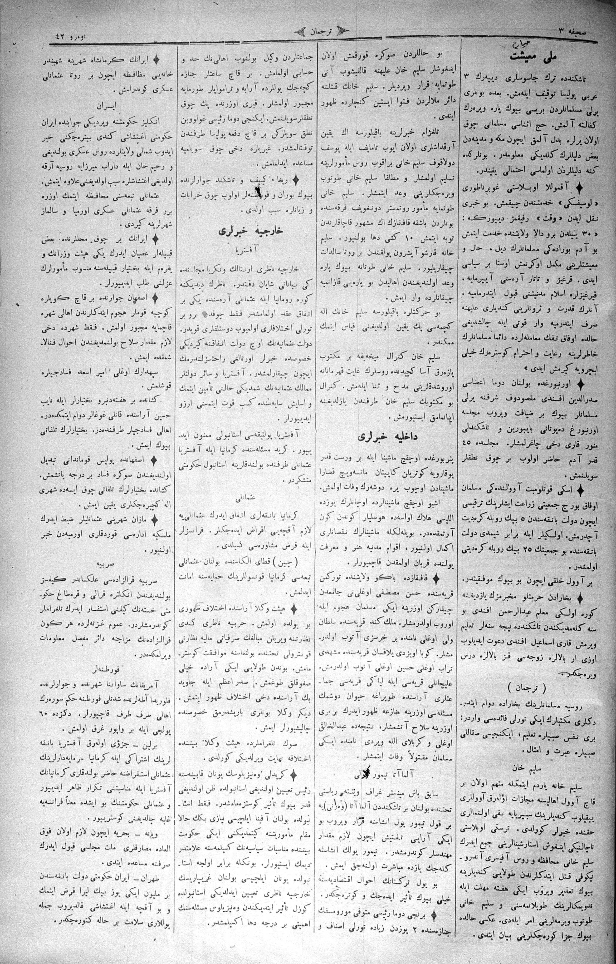 The name of the newspaper changed to Tercüman-ı Ahval-i Zaman in 1905. In 1909, it started to be published under its first name, Tercüman.