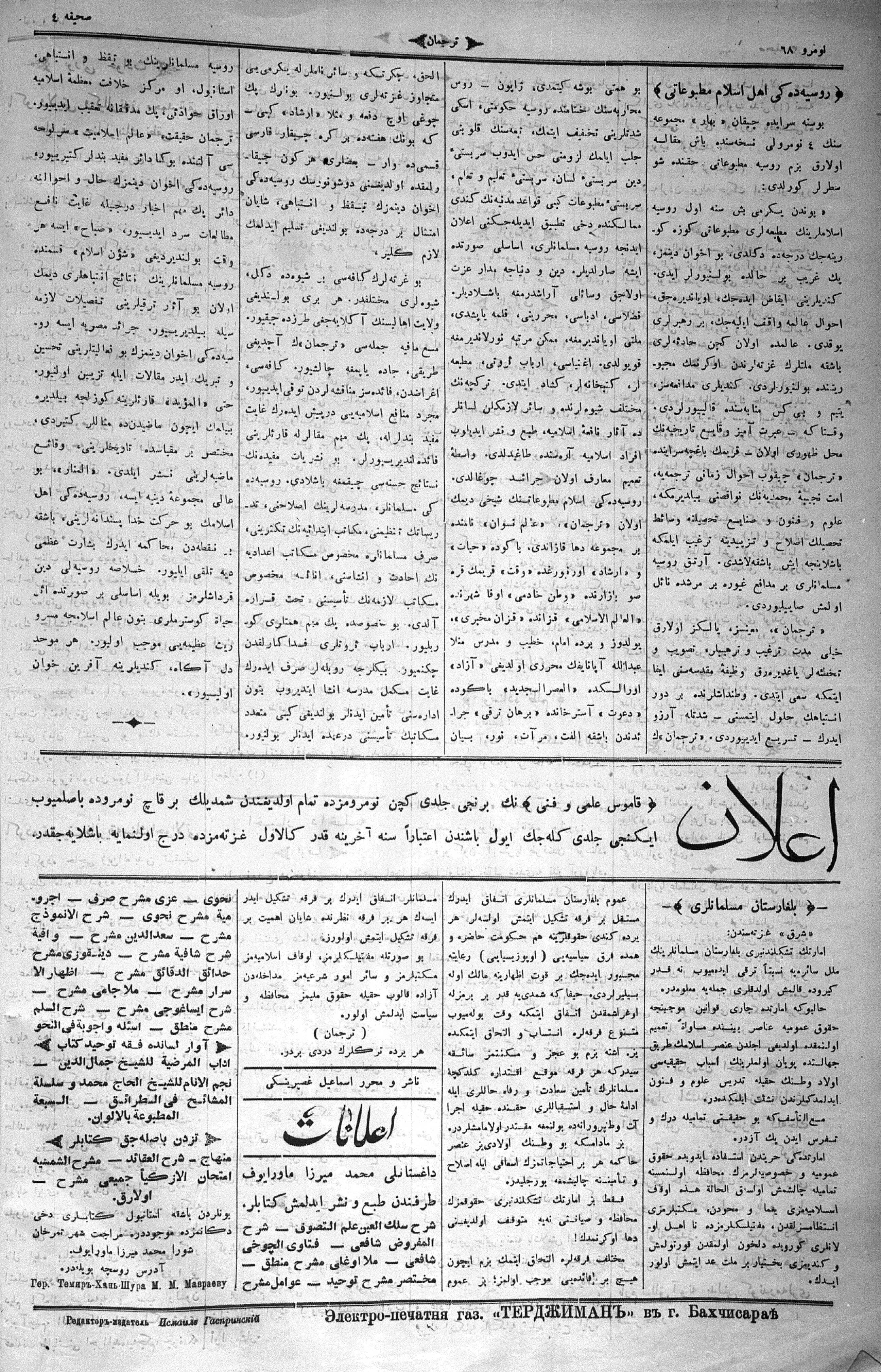 Turkish-Russian newspaper published in Crimea by İsmail Gaspıralı.