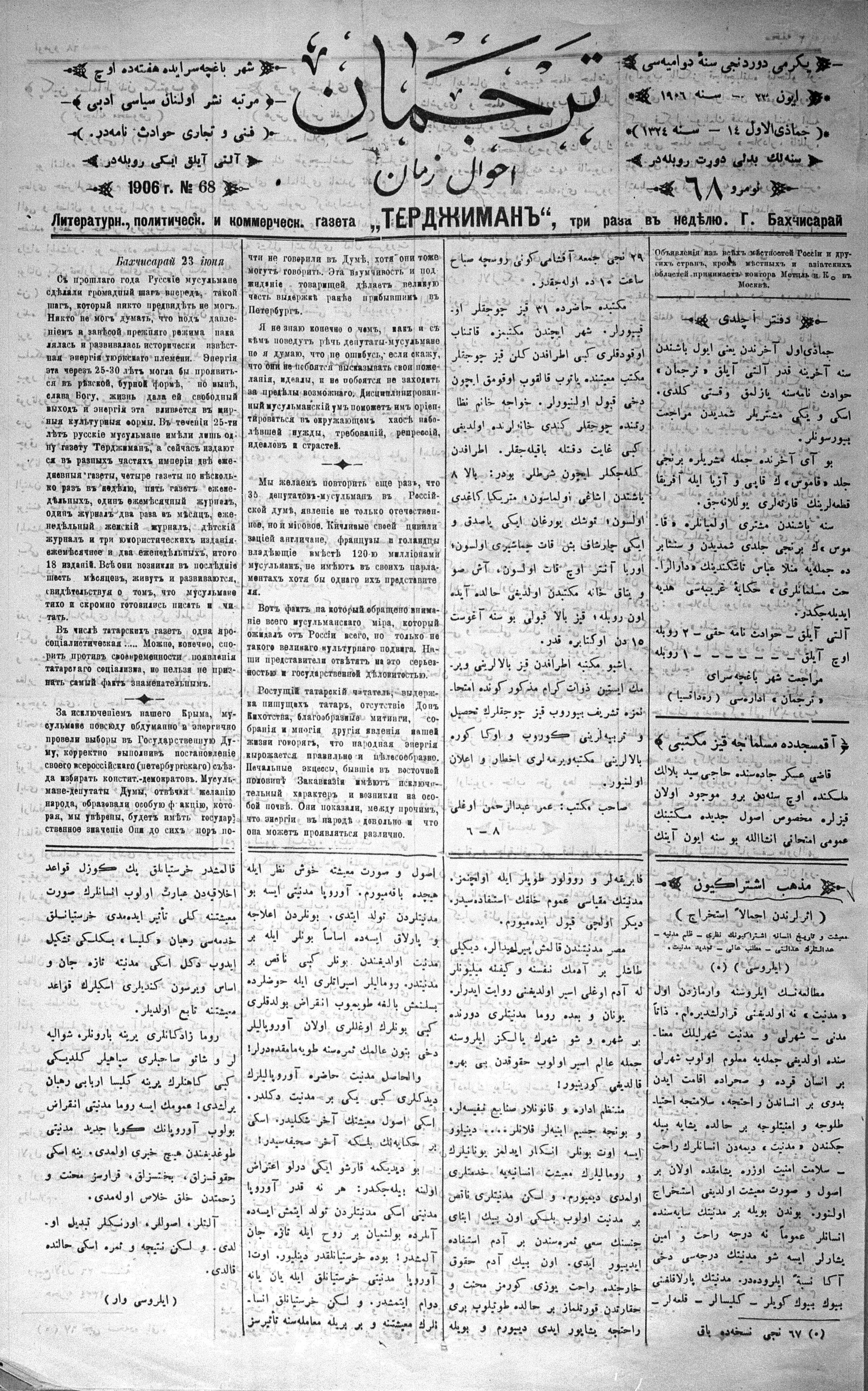 Tercüman, 23 June 1906 Year 24 No 68