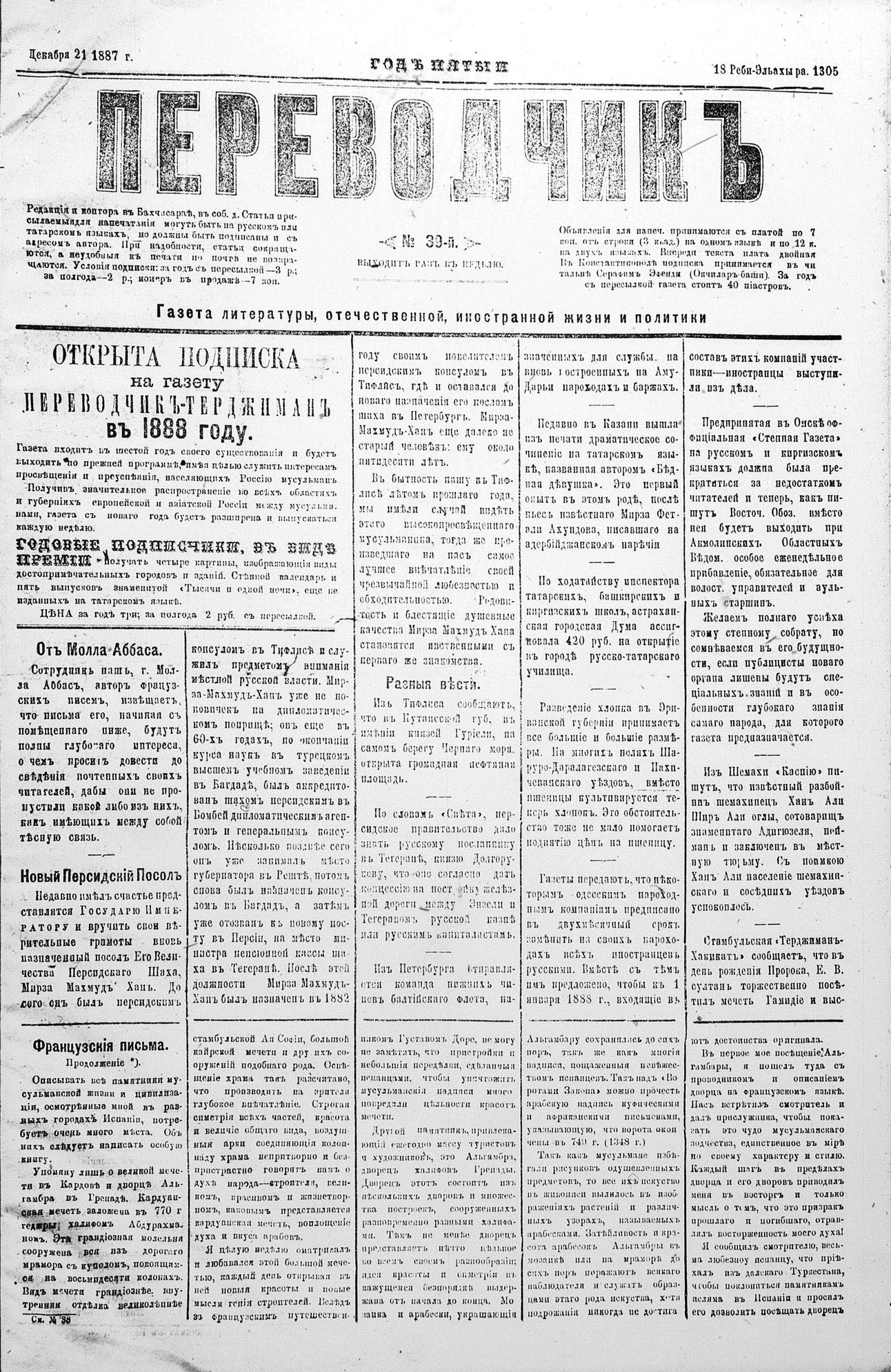 Turkish-Russian newspaper published in Crimea by İsmail Gaspıralı.