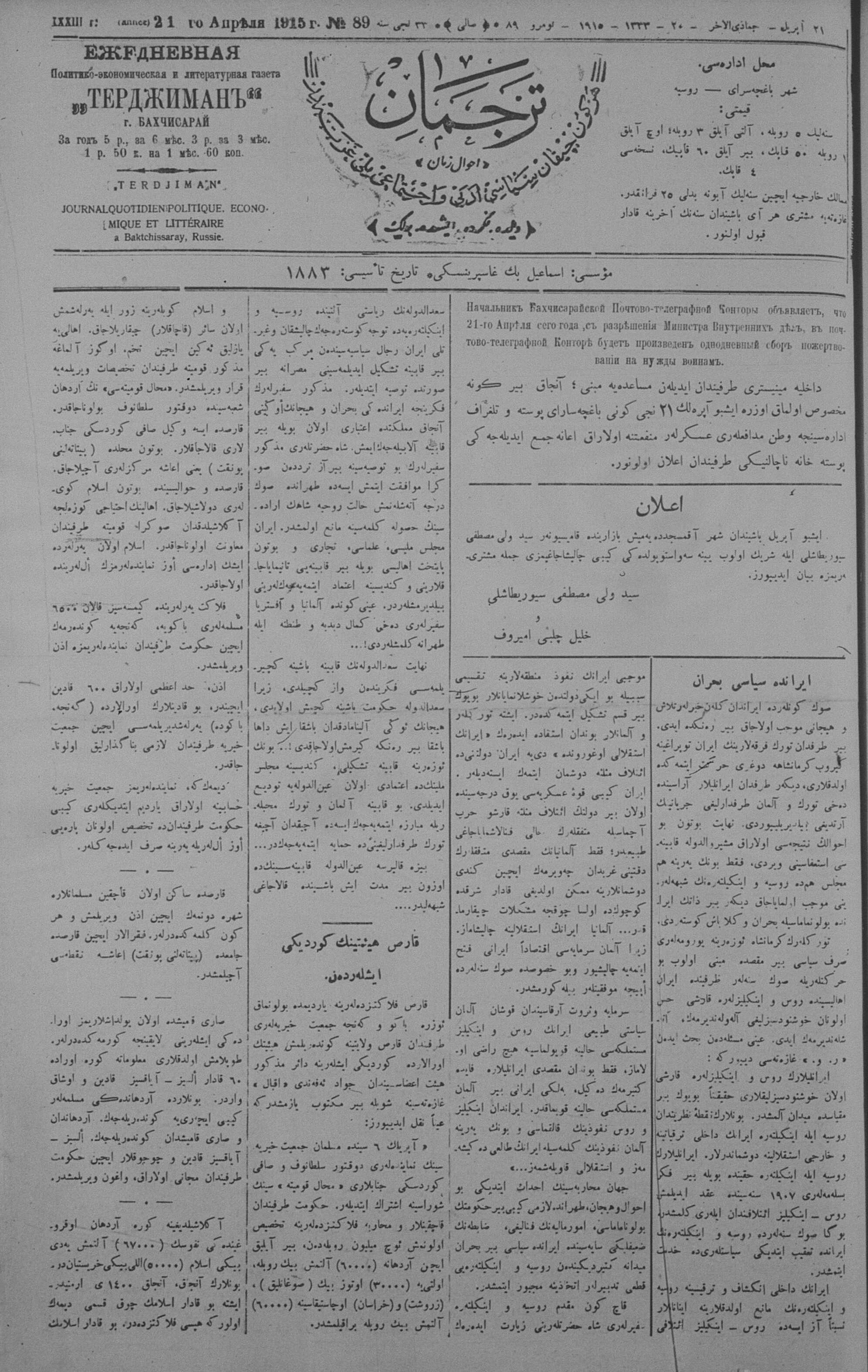 Tercüman, 21 April 1915 Year 33 No 89