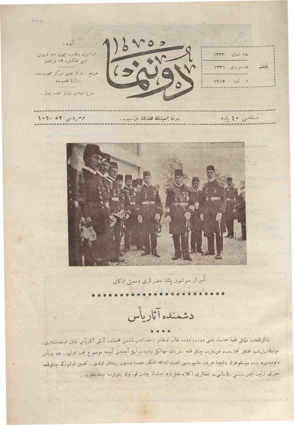 The name of the periodical was published under the following titles in different periods: Donanma: Donanma Cemiyetinin haftalık gazetesi; Donanma: istikbal denizlerdedir; Donanma: şimdilik ayda bir defa neşrolunur; Donanma: ayda bir defa neşr olunur, musavver, ahlaki, edebi, tarihi, fenni mecmuadır.