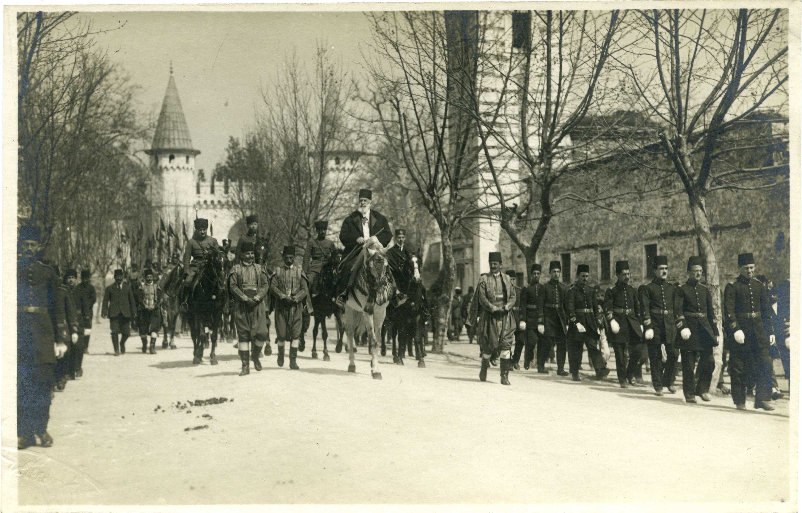 Halife Abdülmecid Efendi beraberinde Edip Servet Tör, Ekrem Rüştü Akömer ve Nizameddin Bey de olduğu halde Topkapı Sarayı'ndan çıkarken