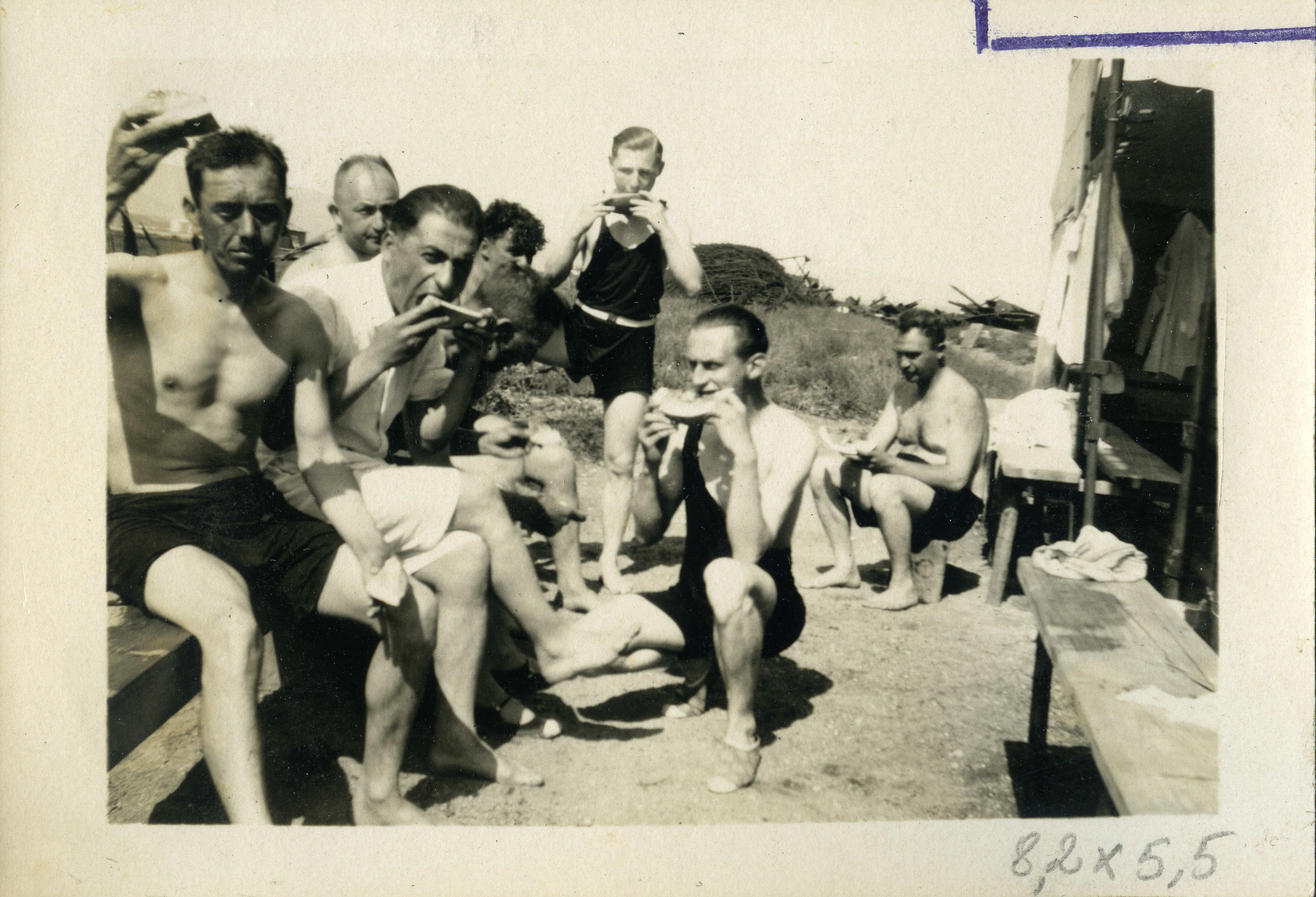 Denizciler yüzdükten sonra karpuz yerken çekilen fotoğrafları