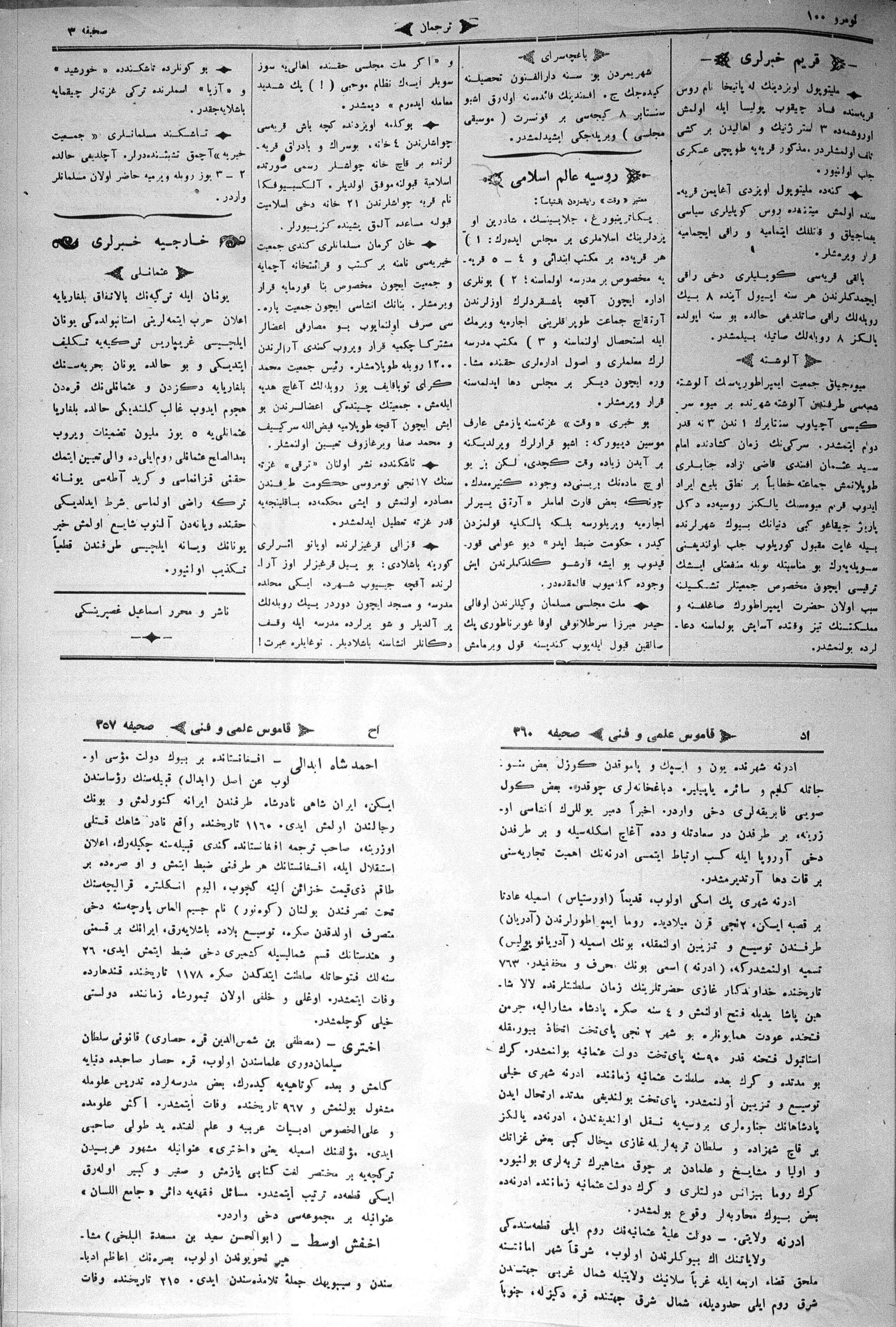 Different spellings of Tercüman: Terdzhiman, Terjuman, Perevodçik and Terjiman.
