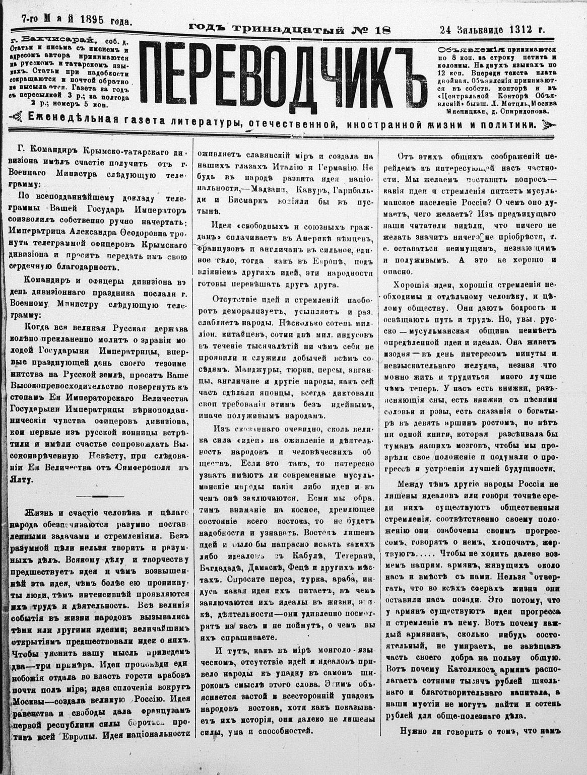 Tercüman, 07 May 1895 Year 13 No 18