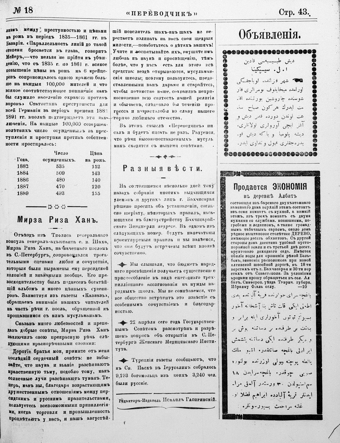 Turkish-Russian newspaper published in Crimea by İsmail Gaspıralı.