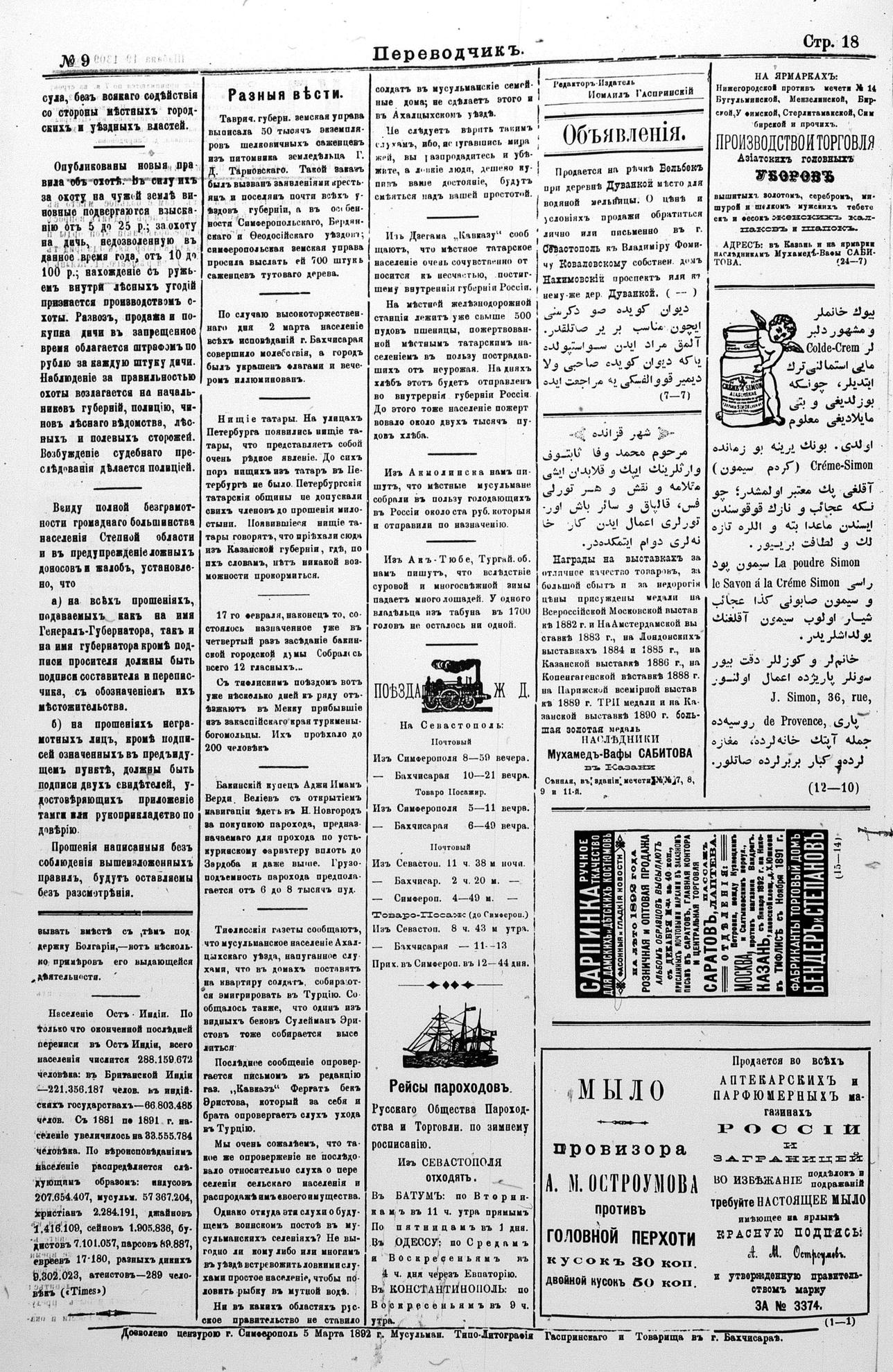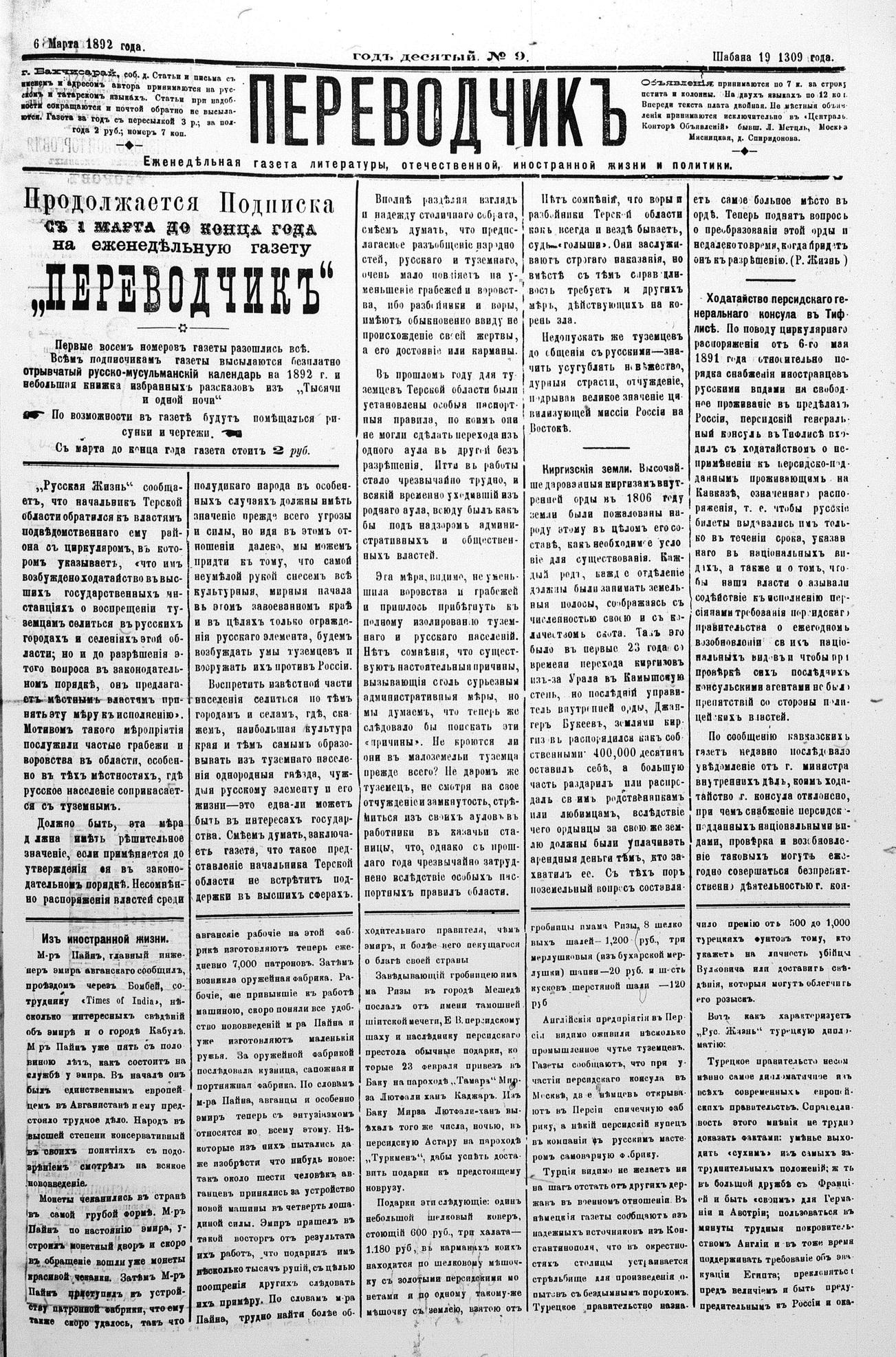Tercüman, 06 March 1892 Year 10 No 9