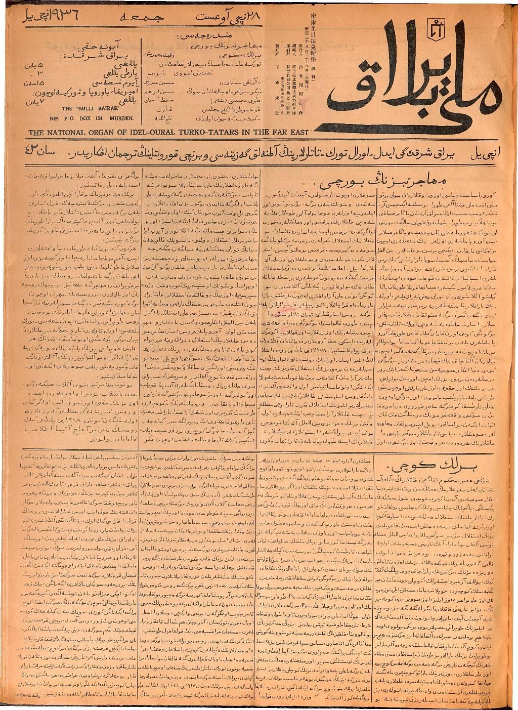 Milli Bayrak, 28 August 1936 Year 1 No 42