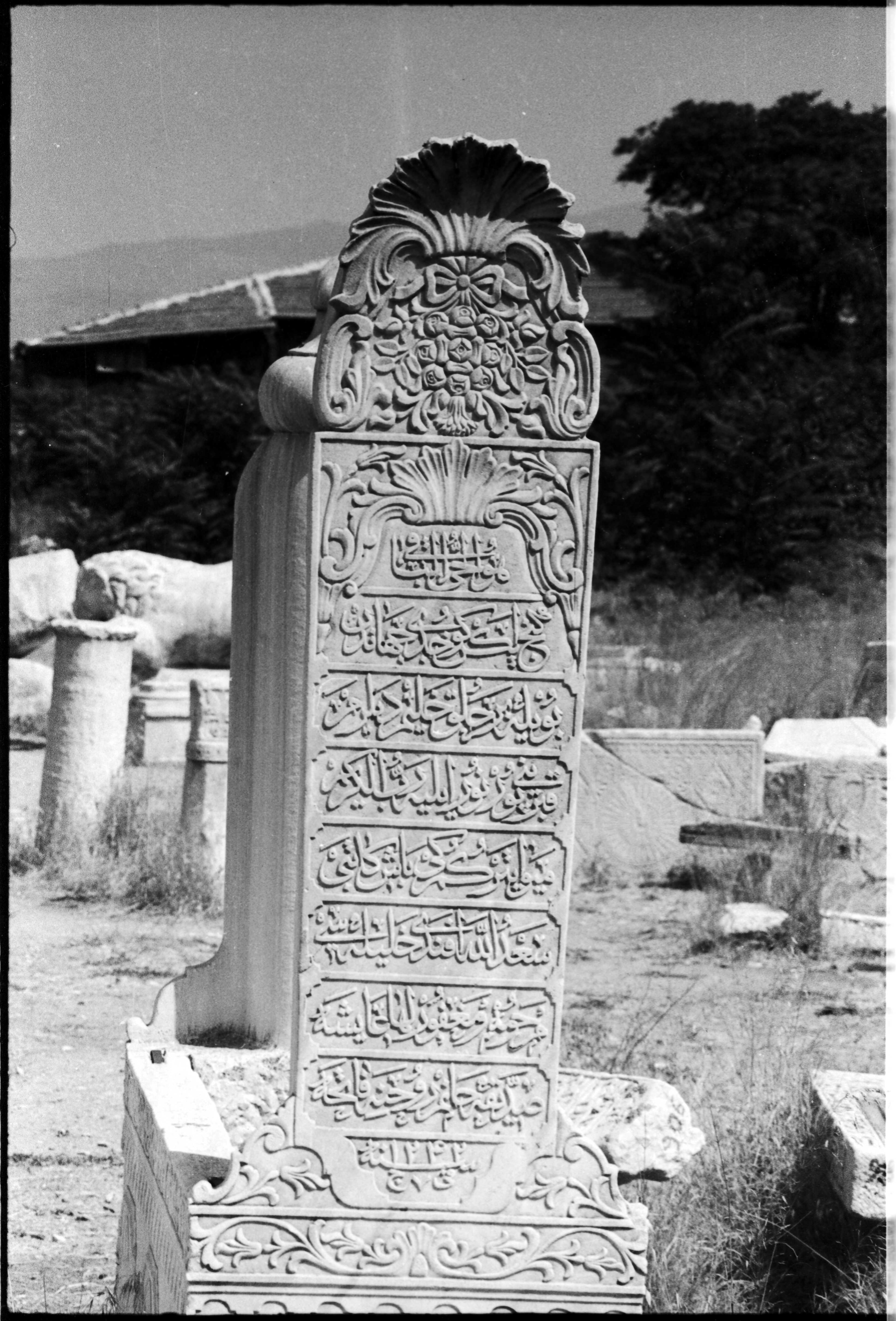 İzmir Agora'da Meyve-i Tir Gümrüğü Başkatibi Sadullah Efendi’nin eşi Ayşe Sıdıka Hanım'ın 7 Cemaziyelahir 1242 / 1827 tarihli mezar taşı