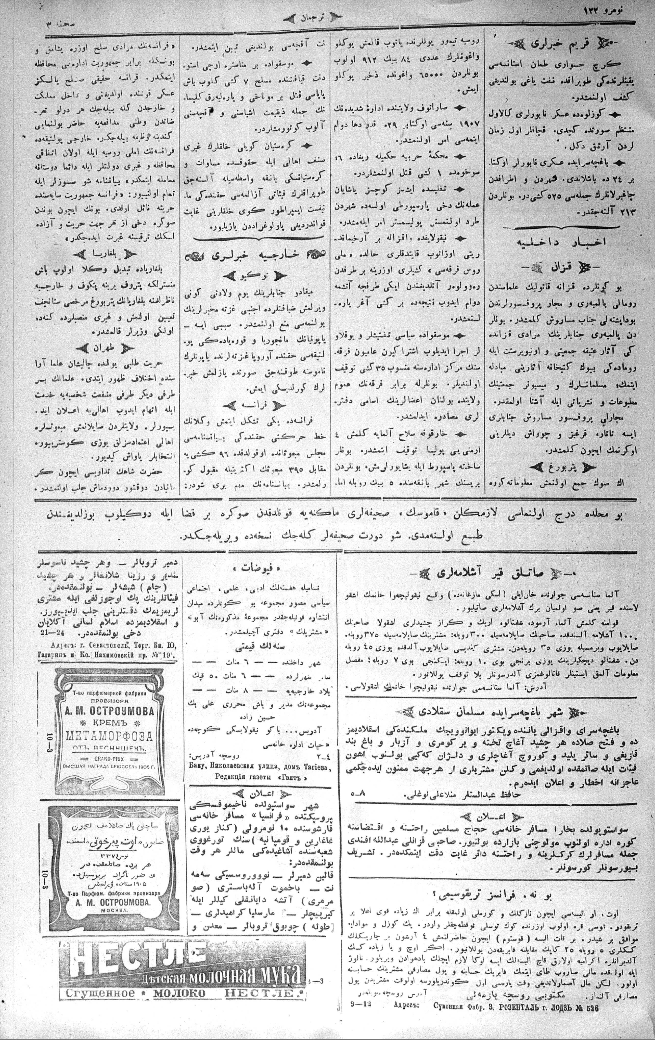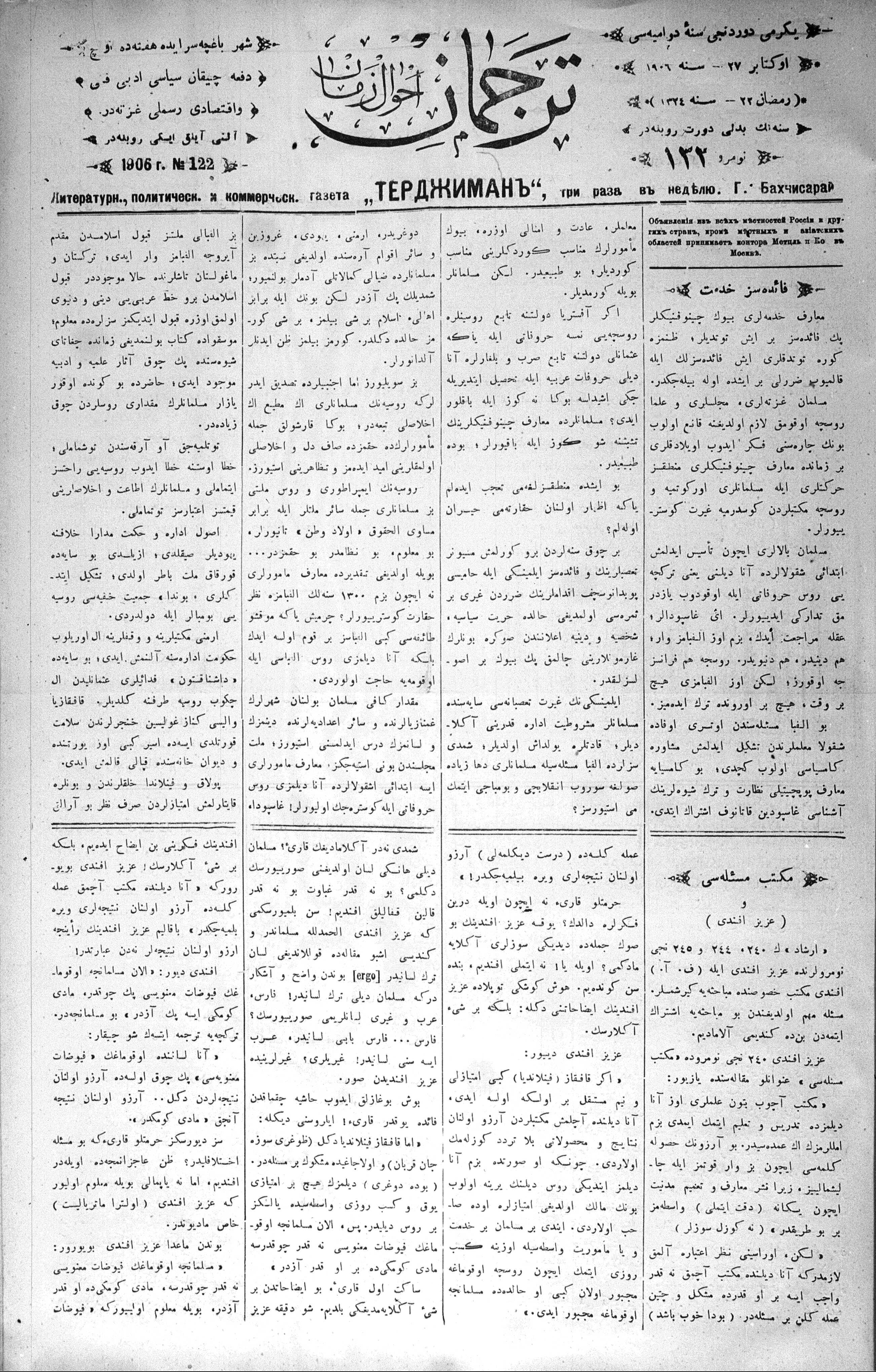 Tercüman, 27 October 1906 Year 24 No 122