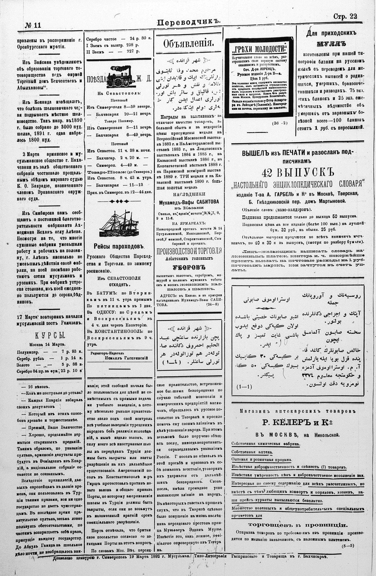 Turkish-Russian newspaper published in Crimea by İsmail Gaspıralı.