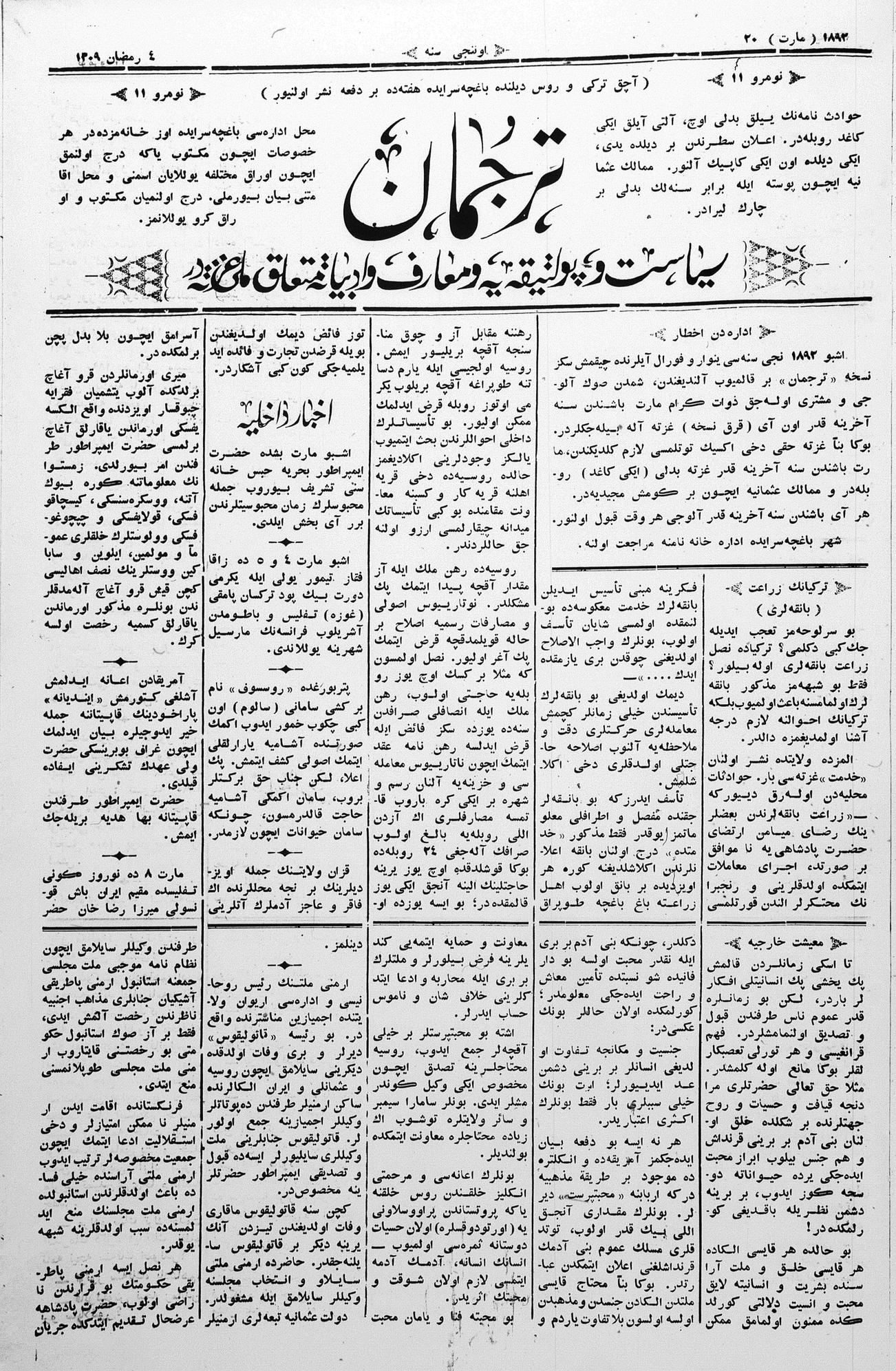 Tercüman, 20 March 1892 Year 10 No 11