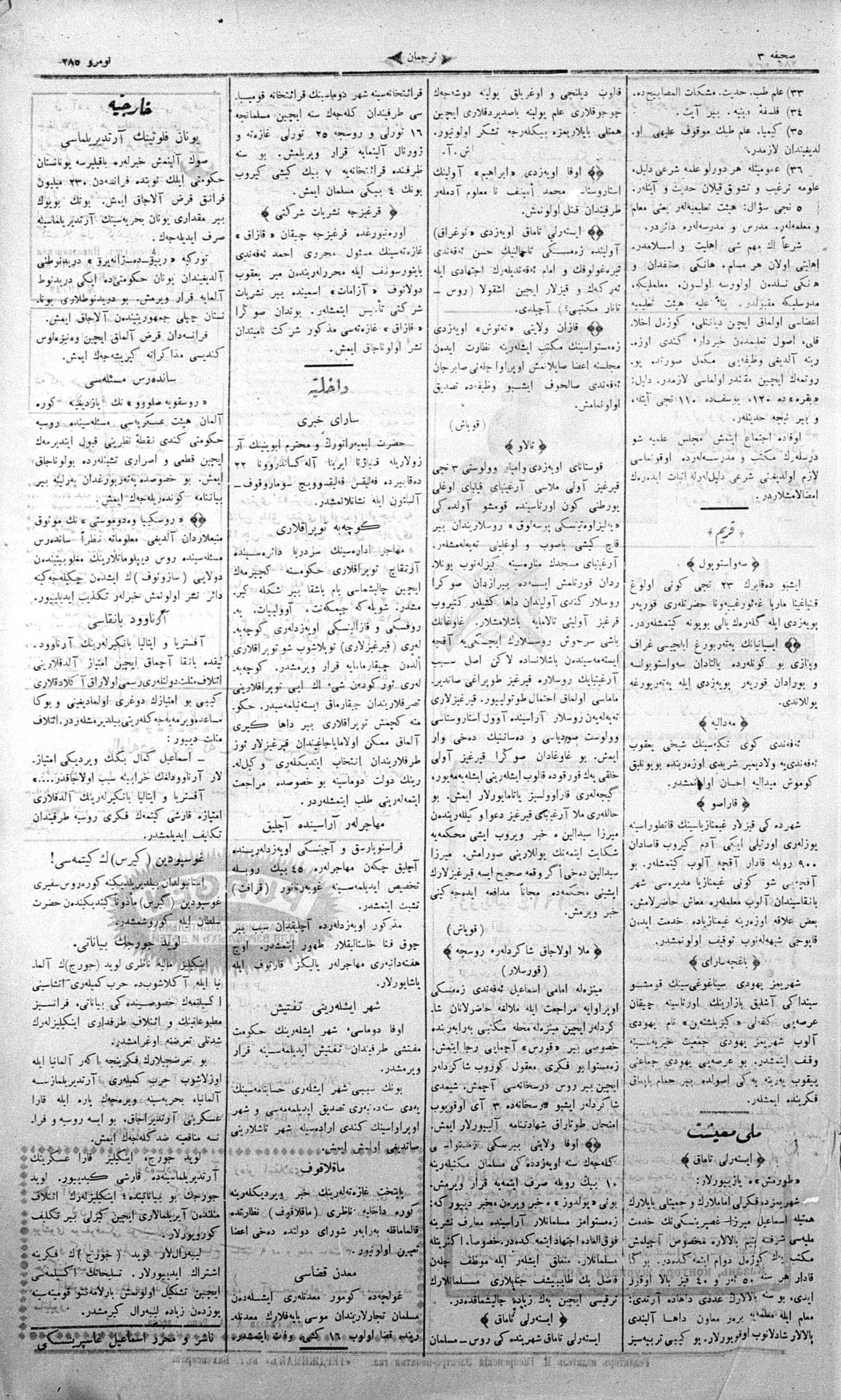 The name of the newspaper changed to Tercüman-ı Ahval-i Zaman in 1905. In 1909, it started to be published under its first name, Tercüman.