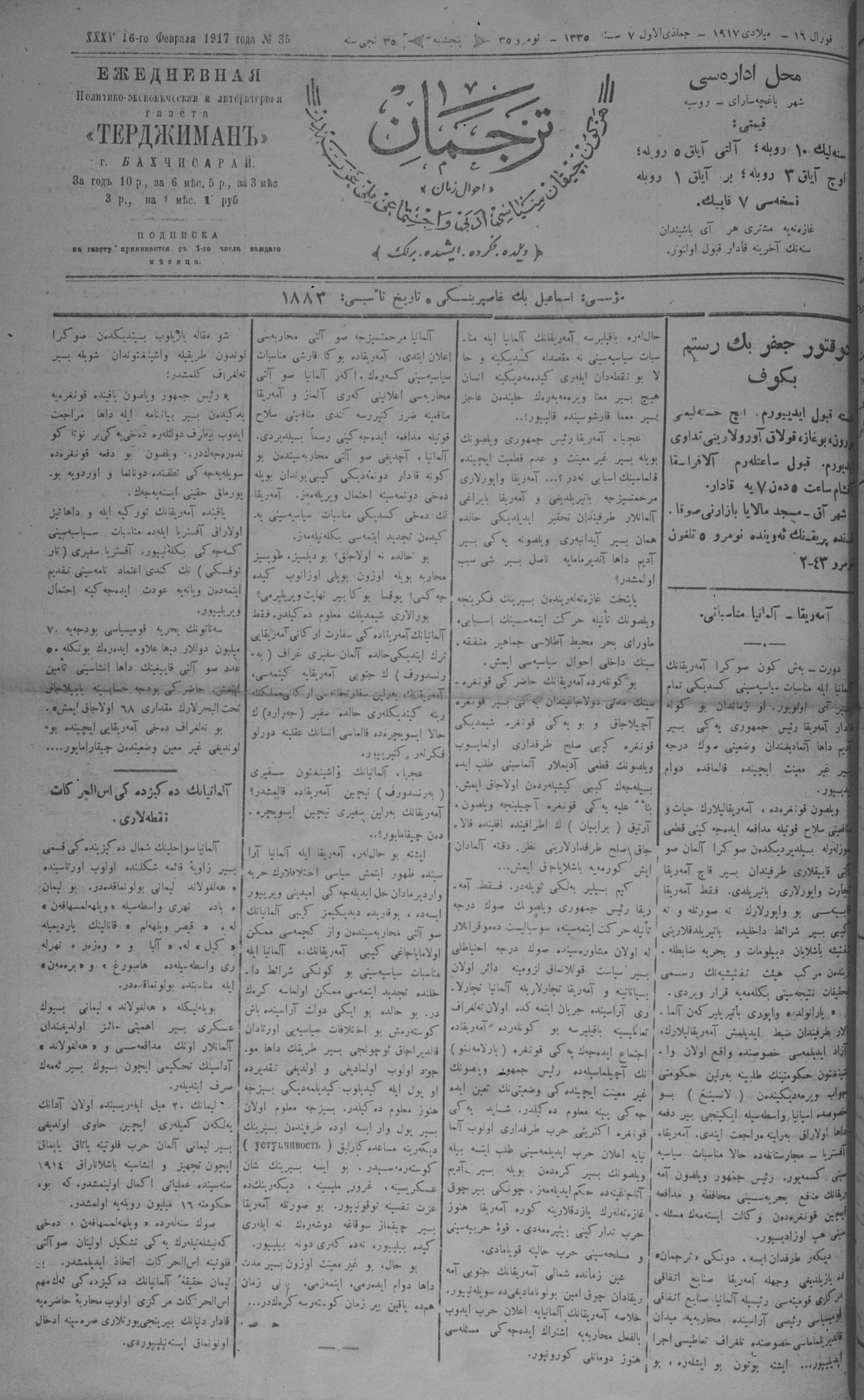 Tercüman, 16 February 1917 Year 35 No 35