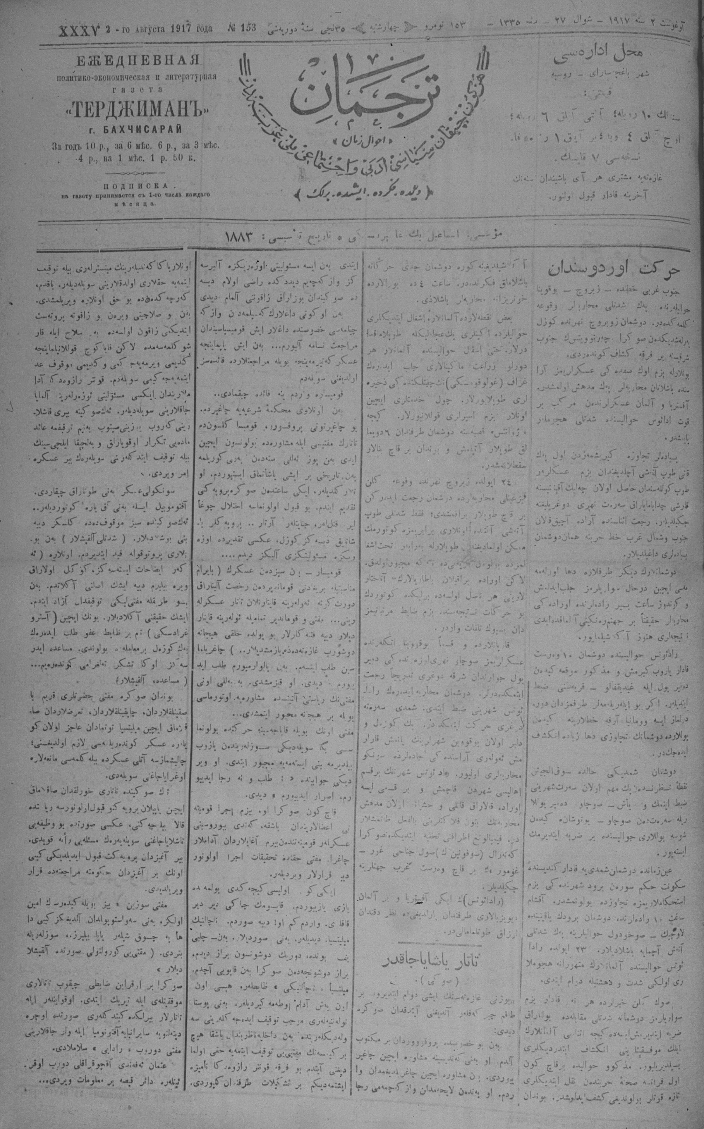 Turkish-Russian newspaper published in Crimea by İsmail Gaspıralı.