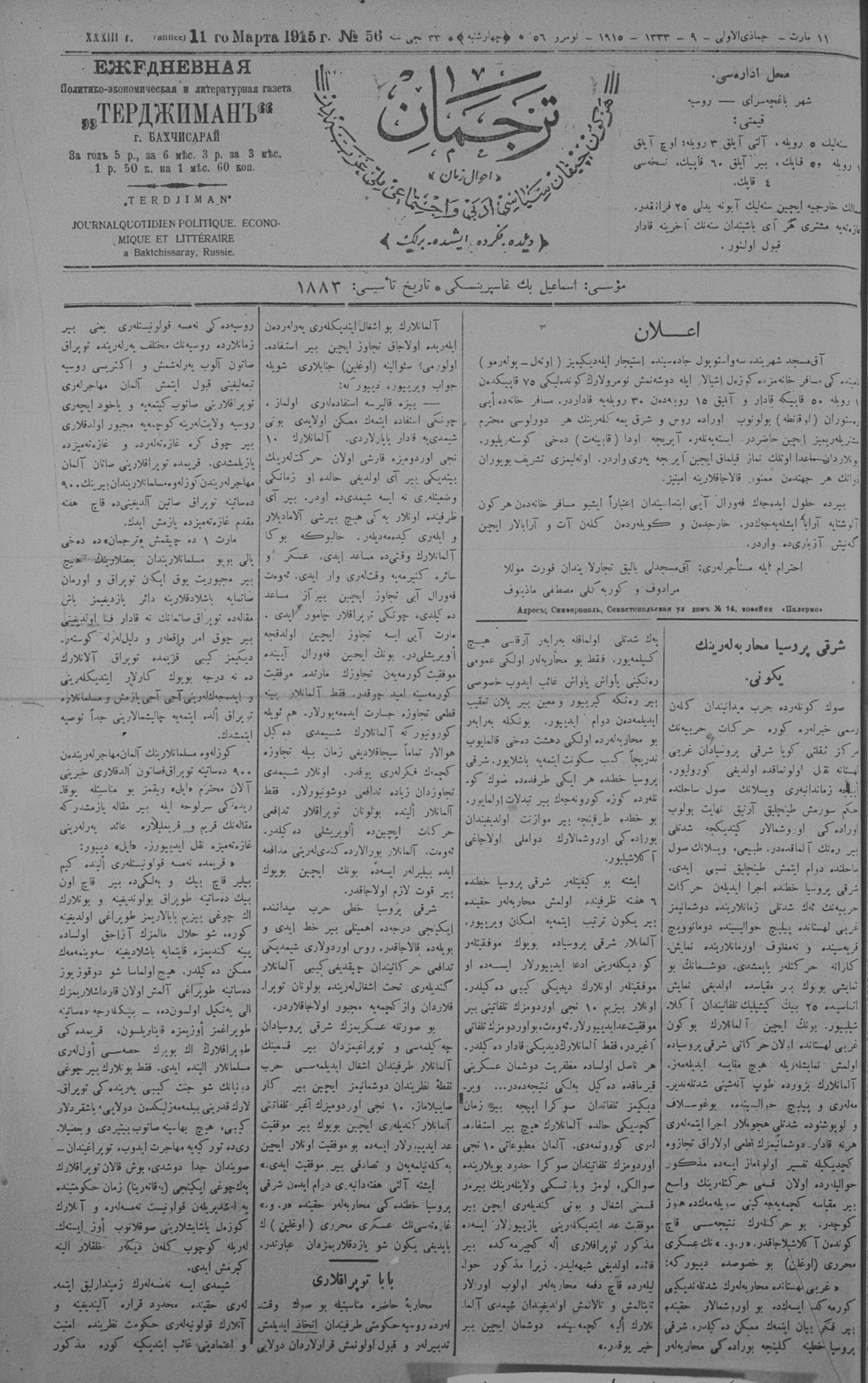 Tercüman, 11 March 1915 Year 33 No 56