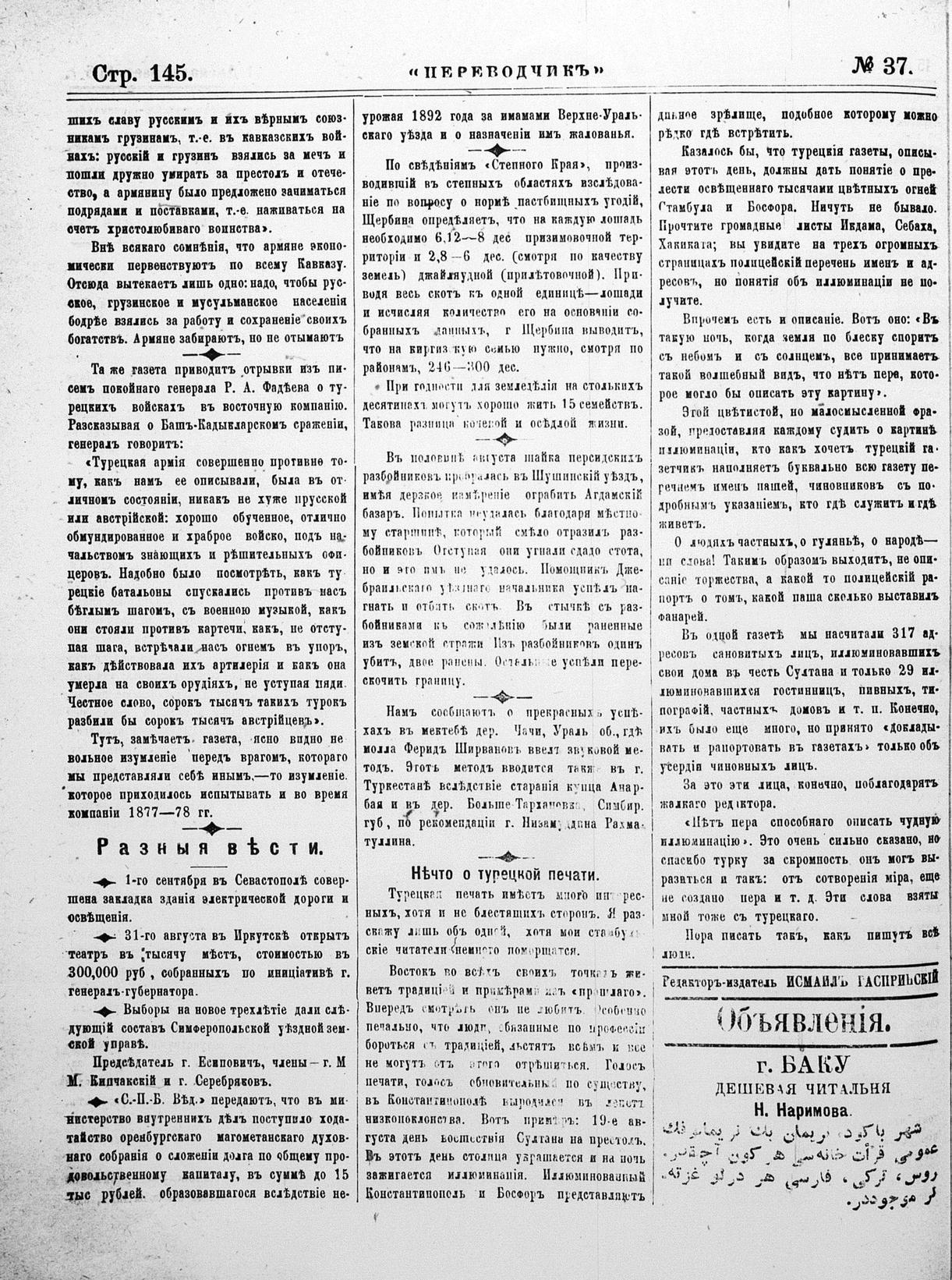 Turkish-Russian newspaper published in Crimea by İsmail Gaspıralı.