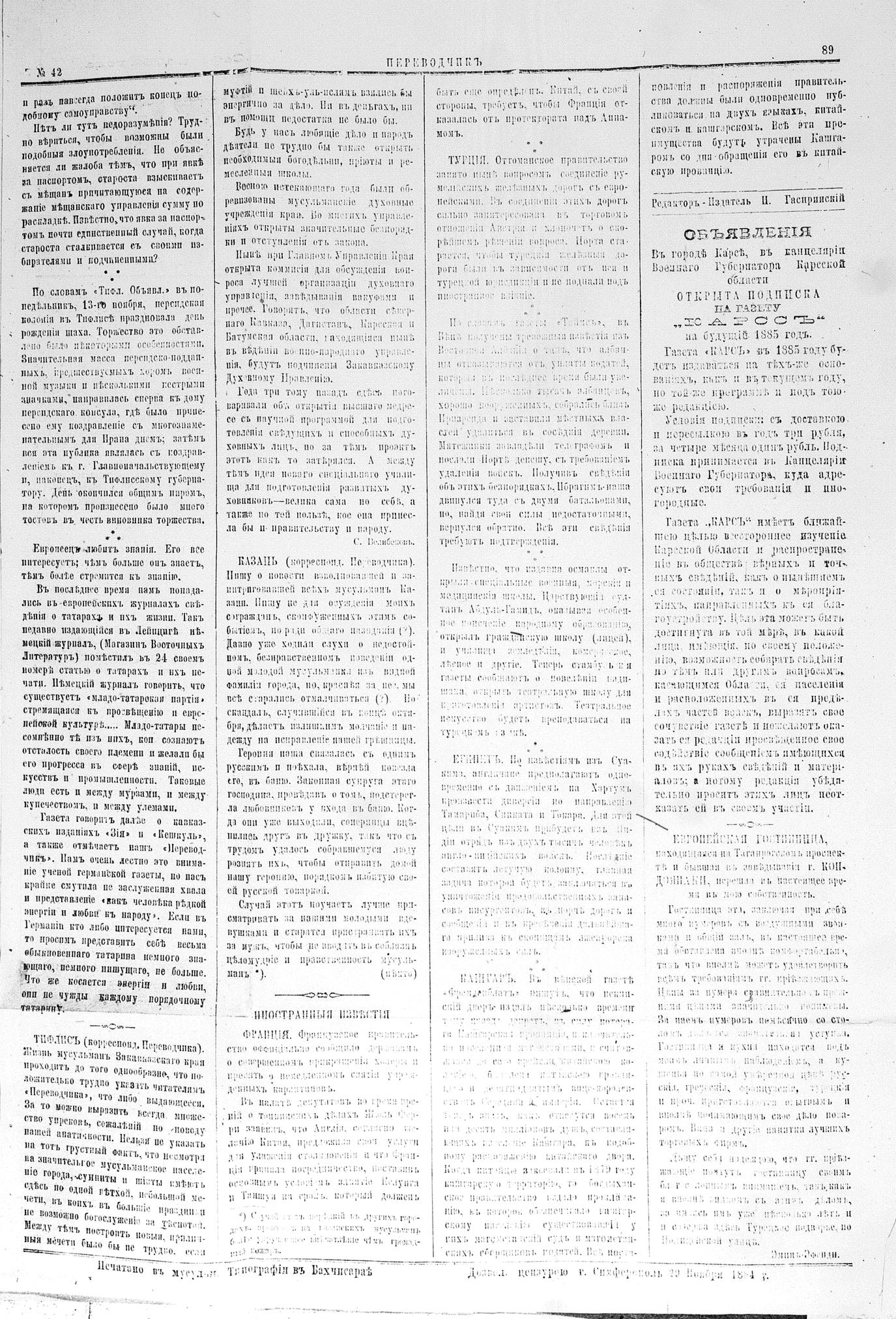 Tercüman, 29 November 1884 Year 2 No 42