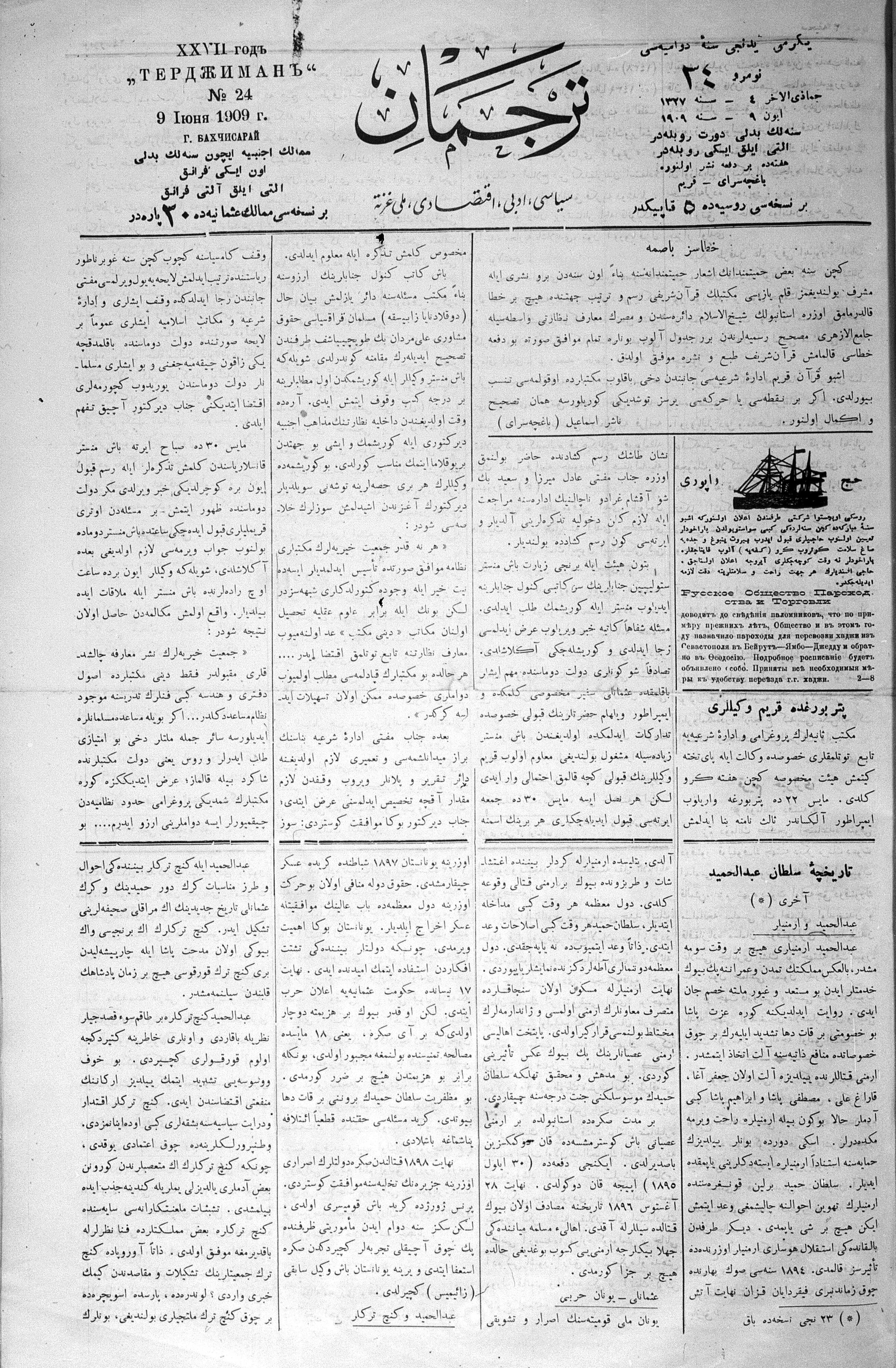 Tercüman, 09 June 1909 Year 27 No 24