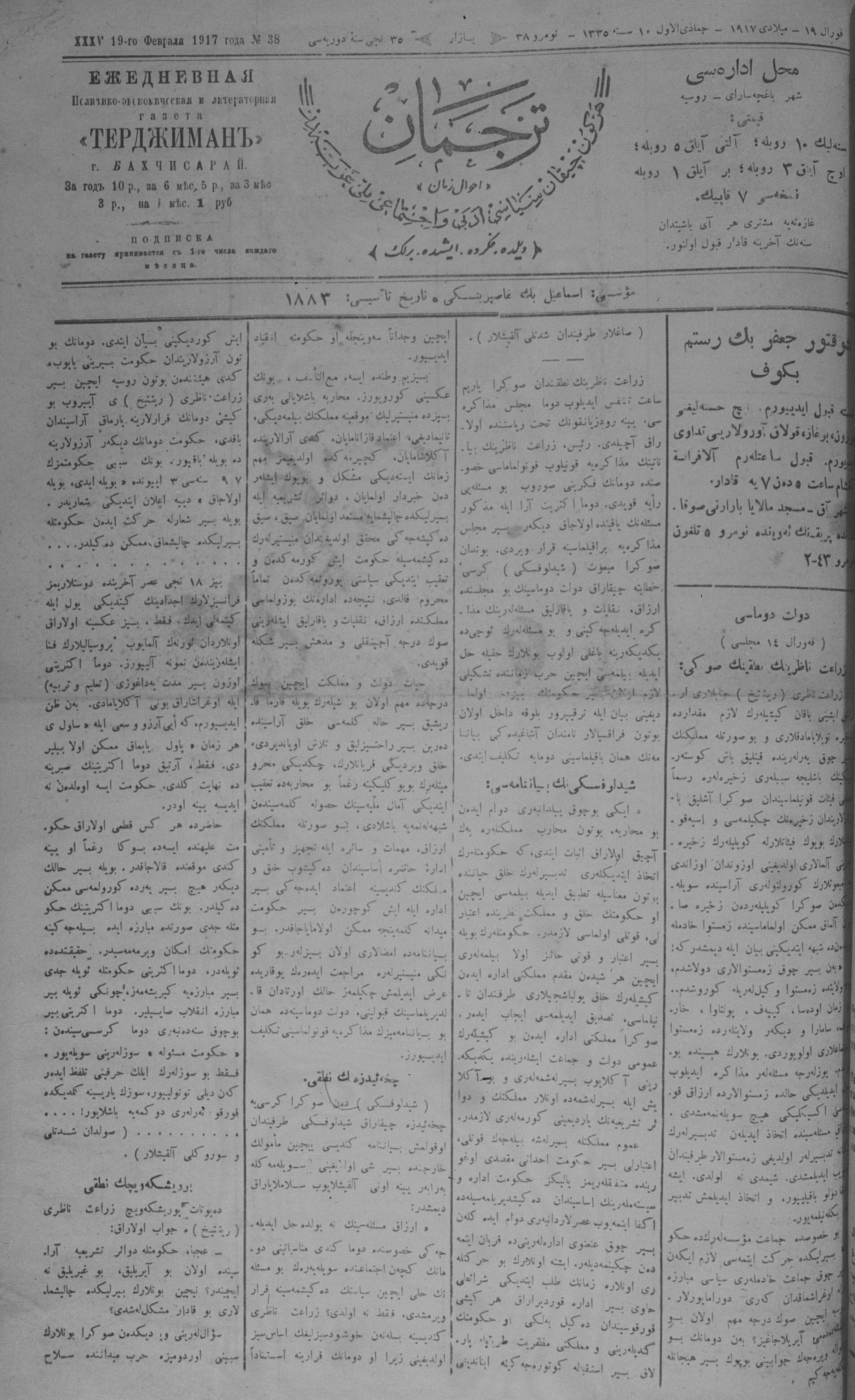 Tercüman, 19 February 1917 Year 35 No 38