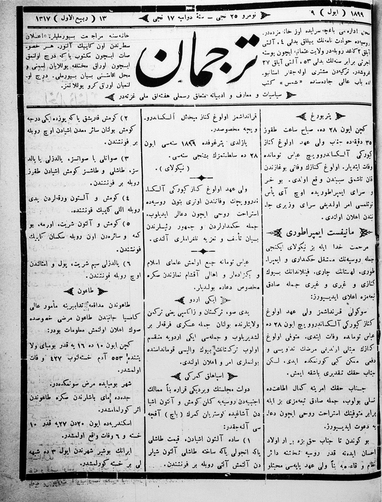 Tercüman, 09 July 1899 Year 17 No 25