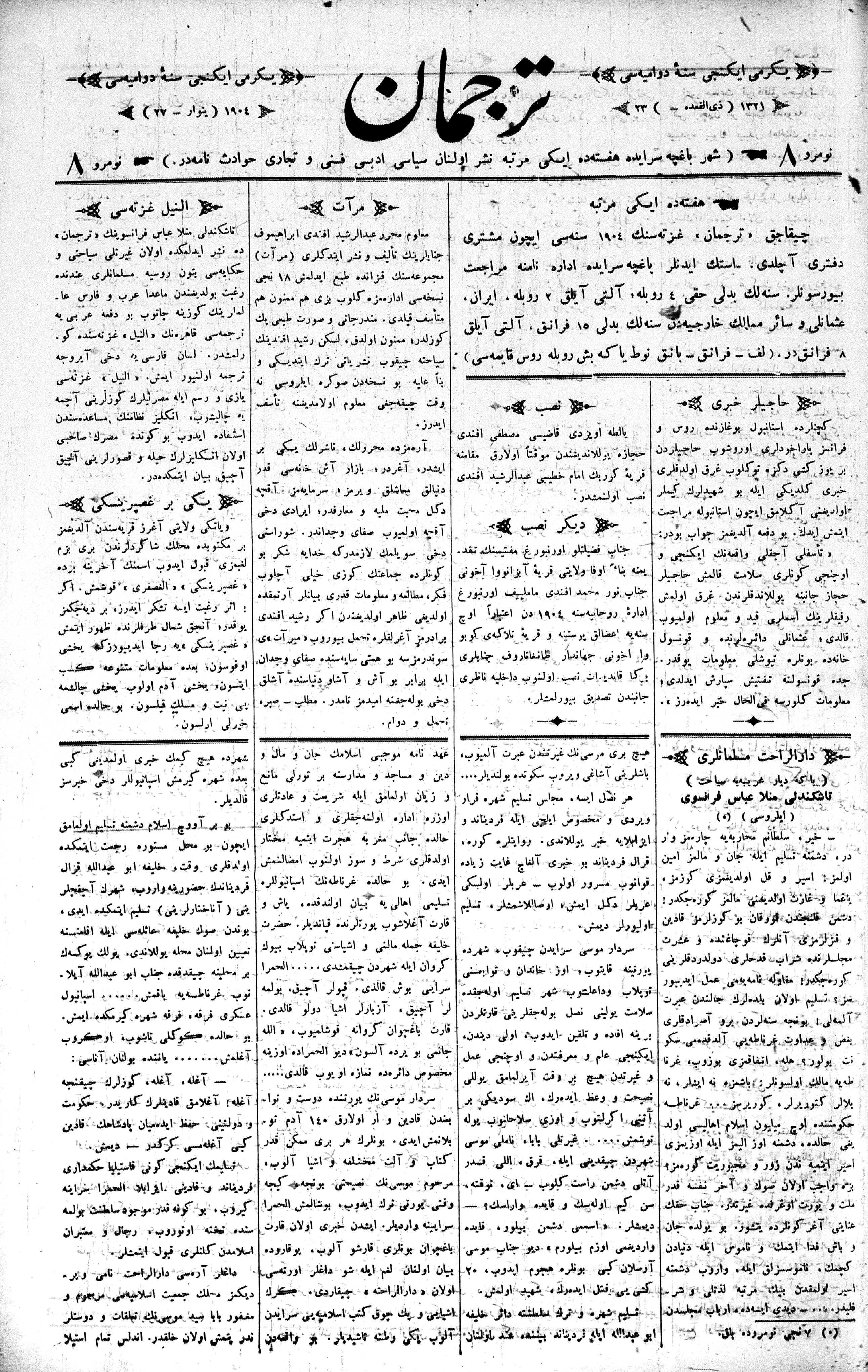 Turkish-Russian newspaper published in Crimea by İsmail Gaspıralı.
